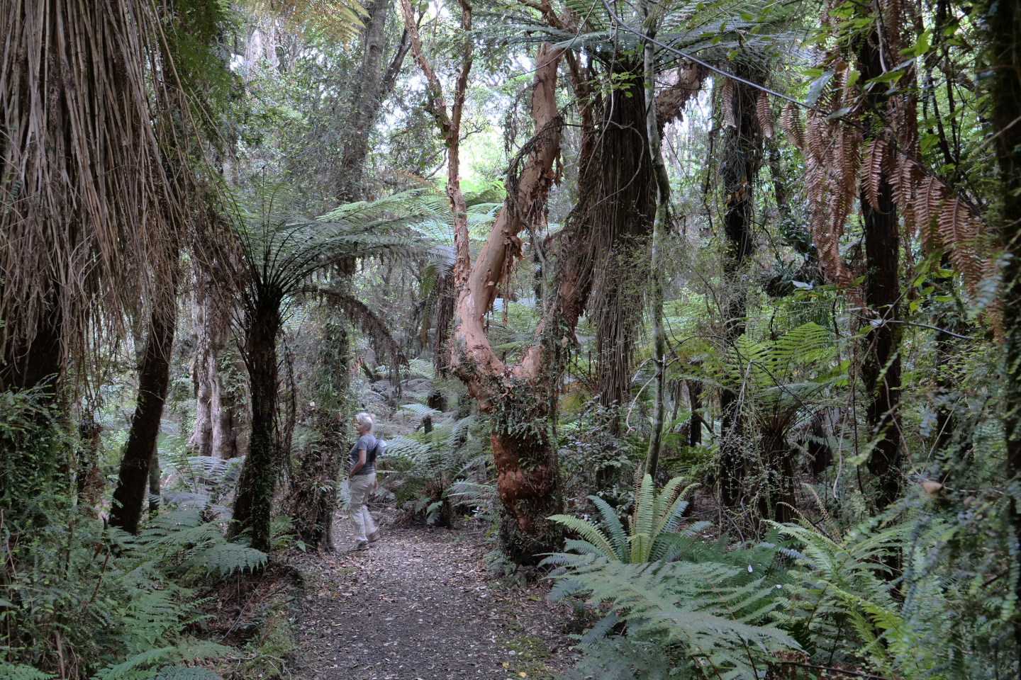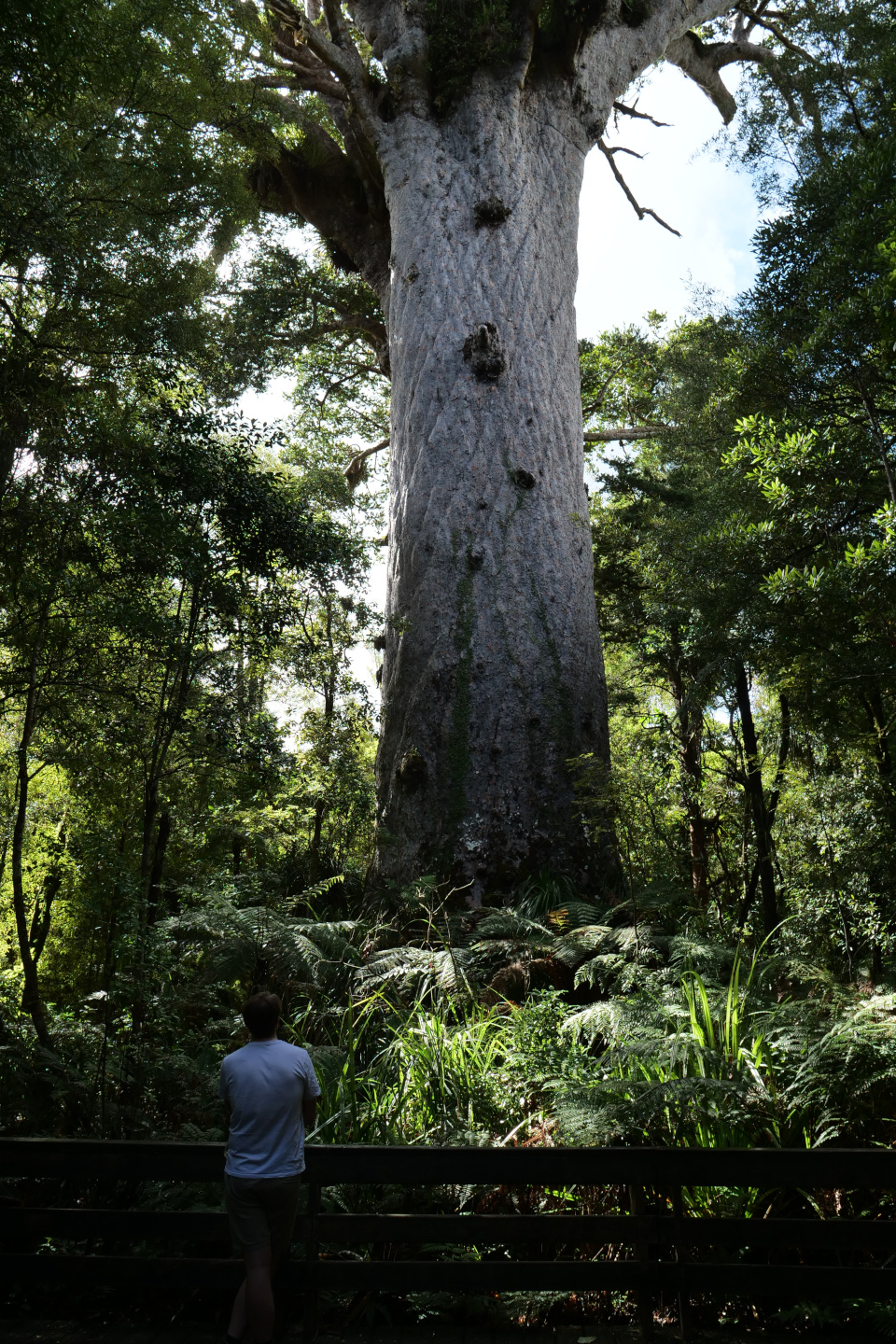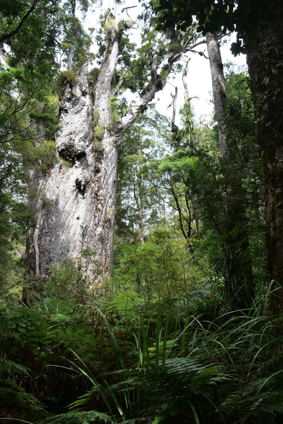 In nördlicher Richtung treffen wir auf die heiligen Bäume der Maori, den Kauri. Der höchste «Tane Mahuta» (Gott des Waldes) ist 53 m hoch und 2 - 3000 Jahre alt. Sein Harz, ähnlich wie Bernstein, wurde im frischen Zustand als Kaugummi, gemischt als Fackel, für Tattoos u.v.m. verwendet.