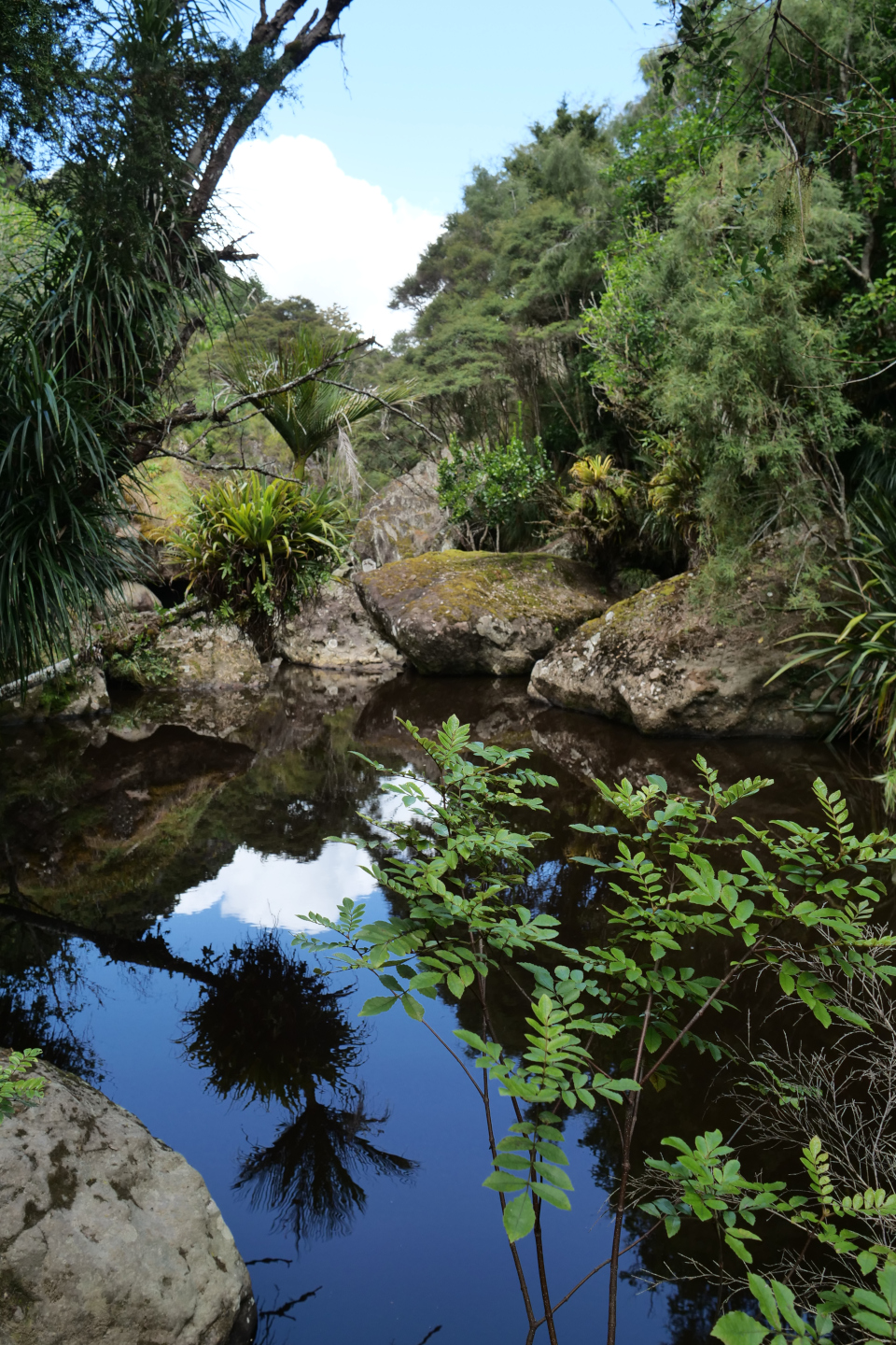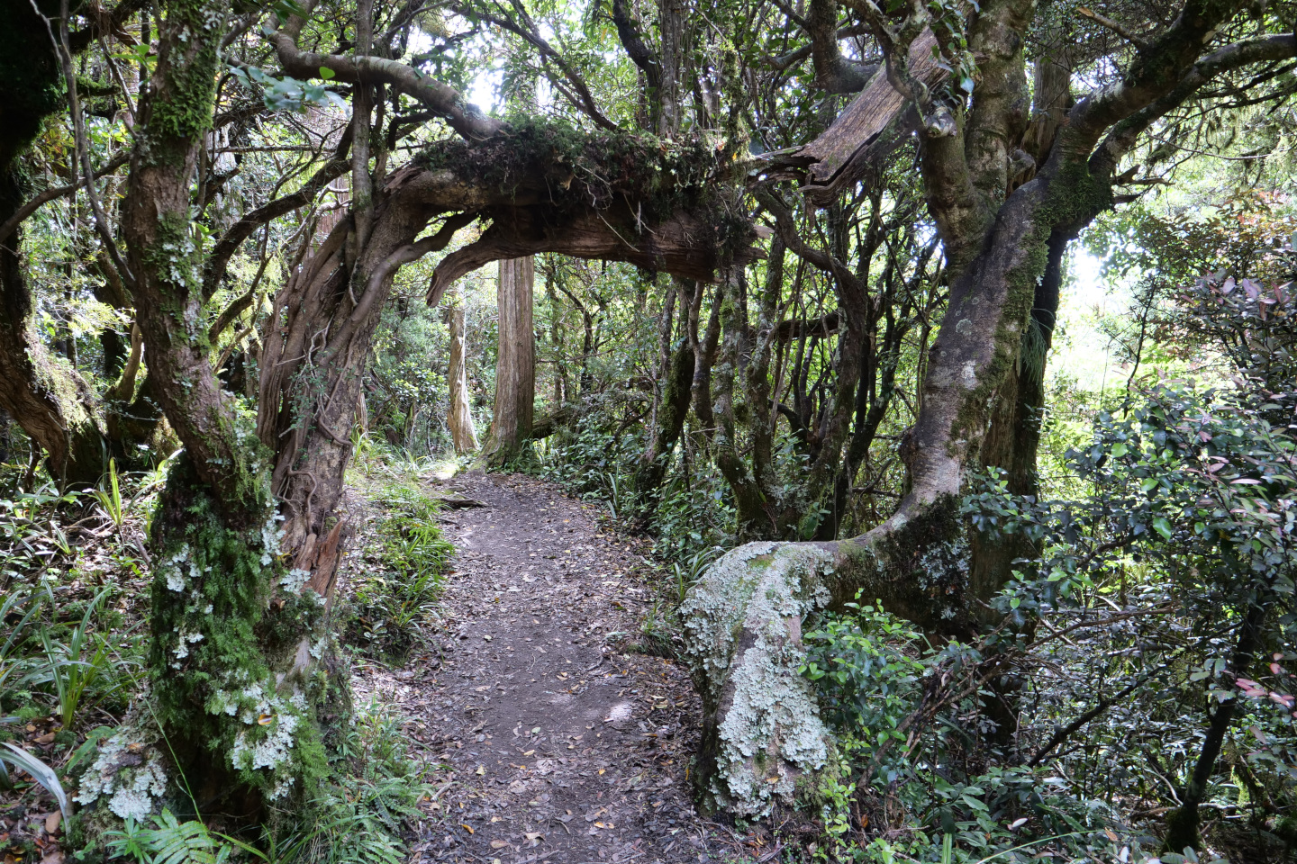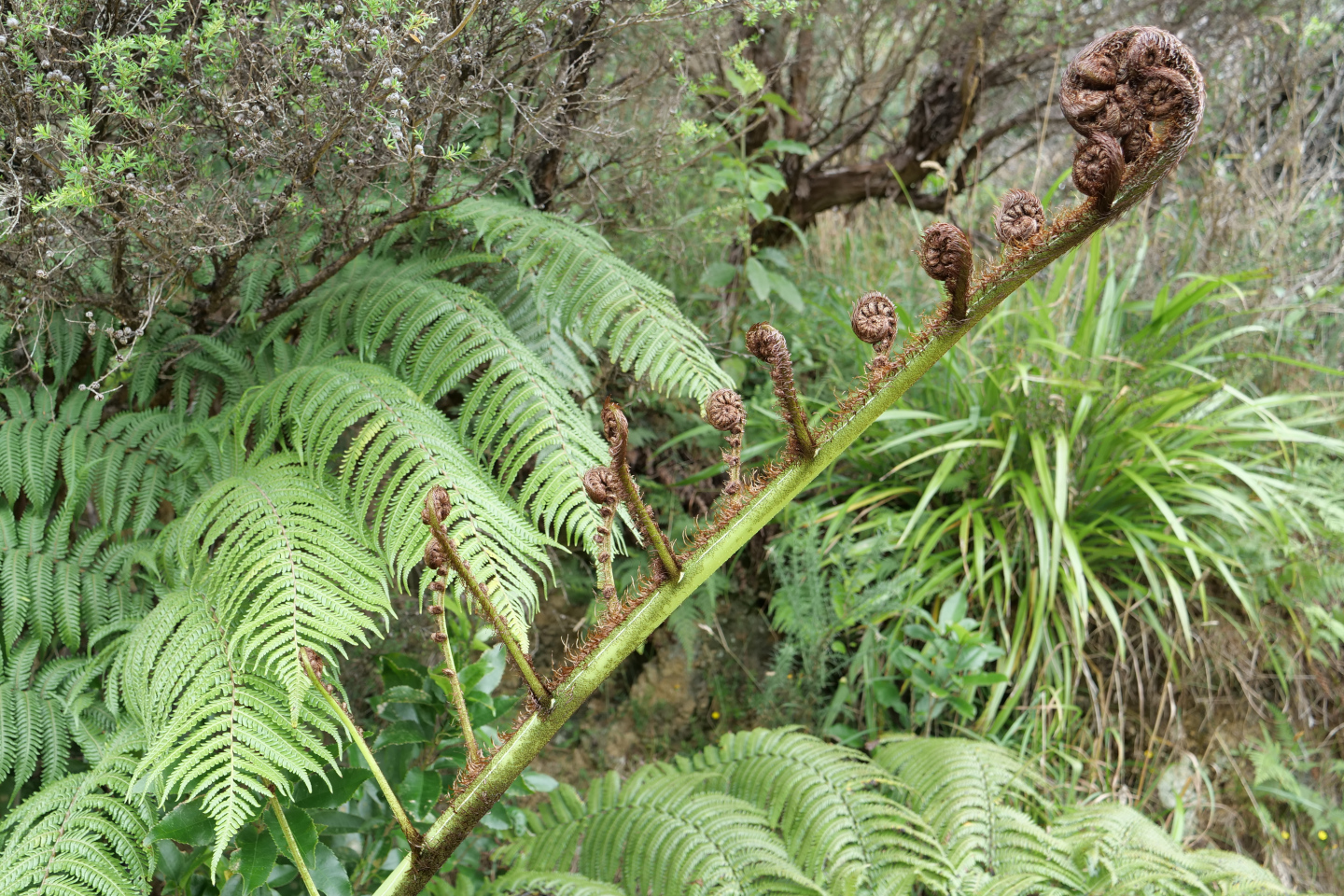 In nördlicher Richtung treffen wir auf die heiligen Bäume der Maori, den Kauri. Der höchste «Tane Mahuta» (Gott des Waldes) ist 53 m hoch und 2 - 3000 Jahre alt. Sein Harz, ähnlich wie Bernstein, wurde im frischen Zustand als Kaugummi, gemischt als Fackel, für Tattoos u.v.m. verwendet.