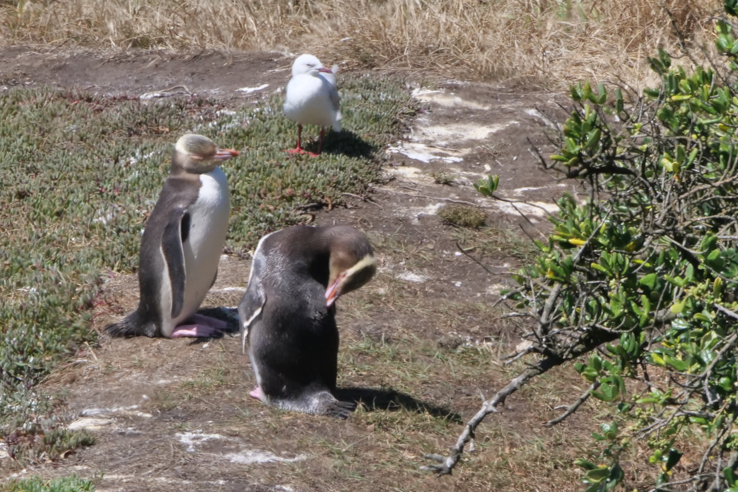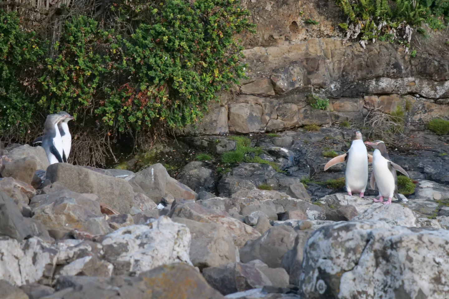 Gelbaugen- und Fjordland eyecrested Pinguine (beide endemisch)
