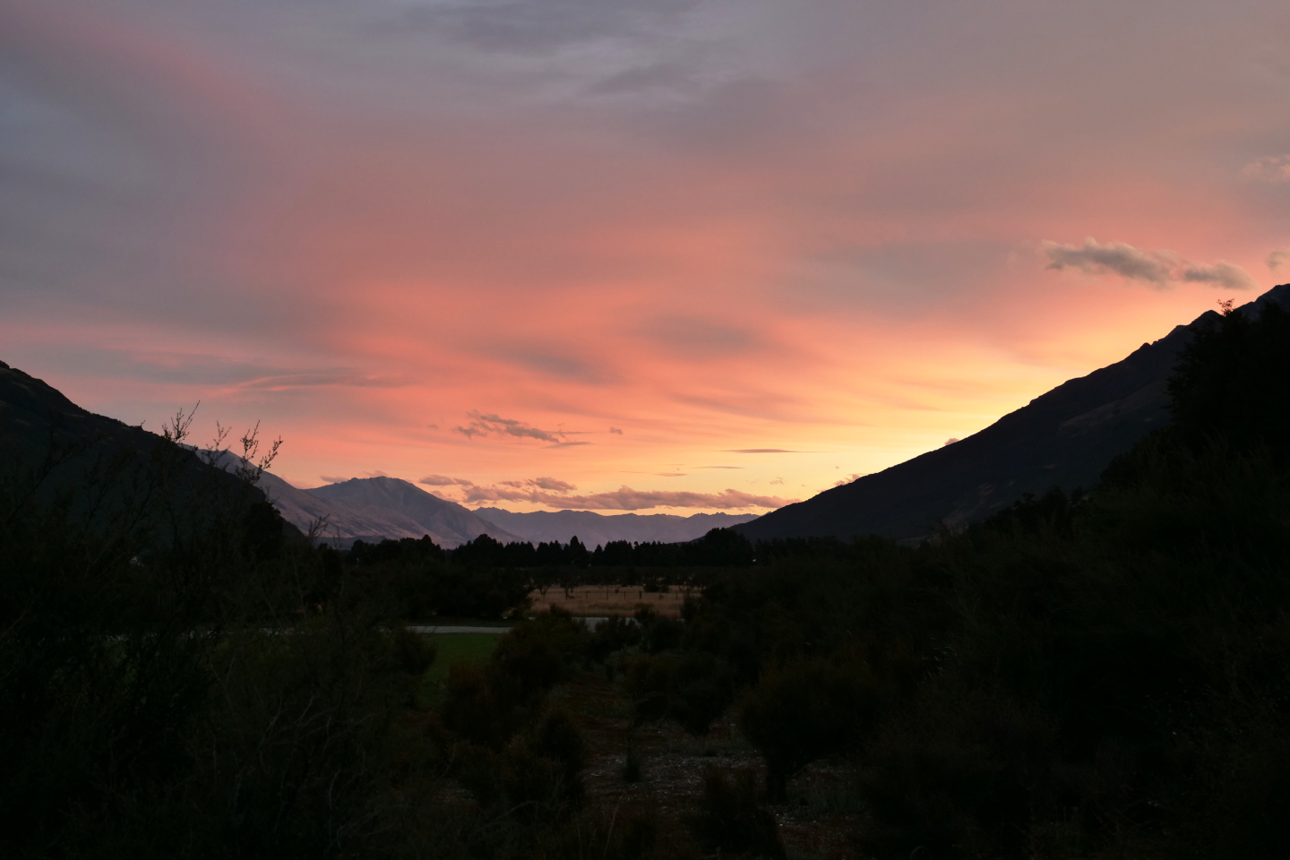 Abenstimmung Sylvan CampsiteRouteburnBlick von der Crown Range Road
