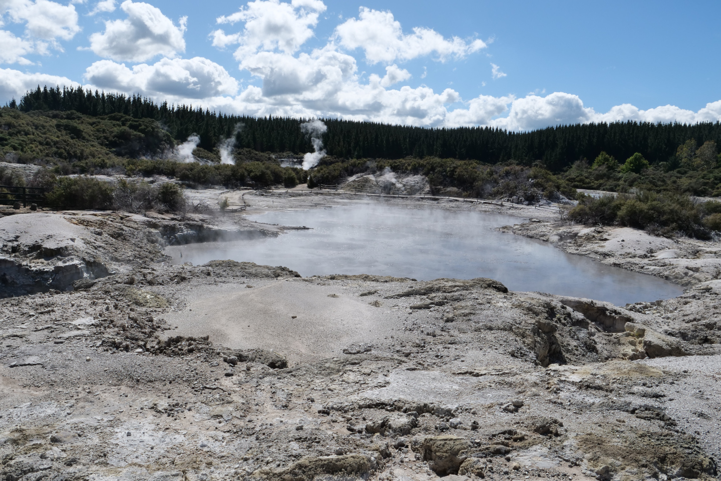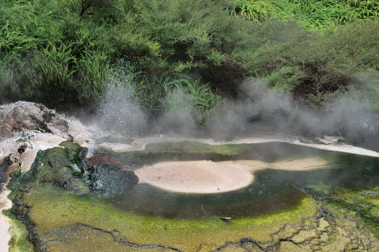 Es brodelt in der Gegend um Rotorua. Schwefeldunst, Dampf-Fontänen jeglicher Art sowie ein Vulkantal ziehen uns an.