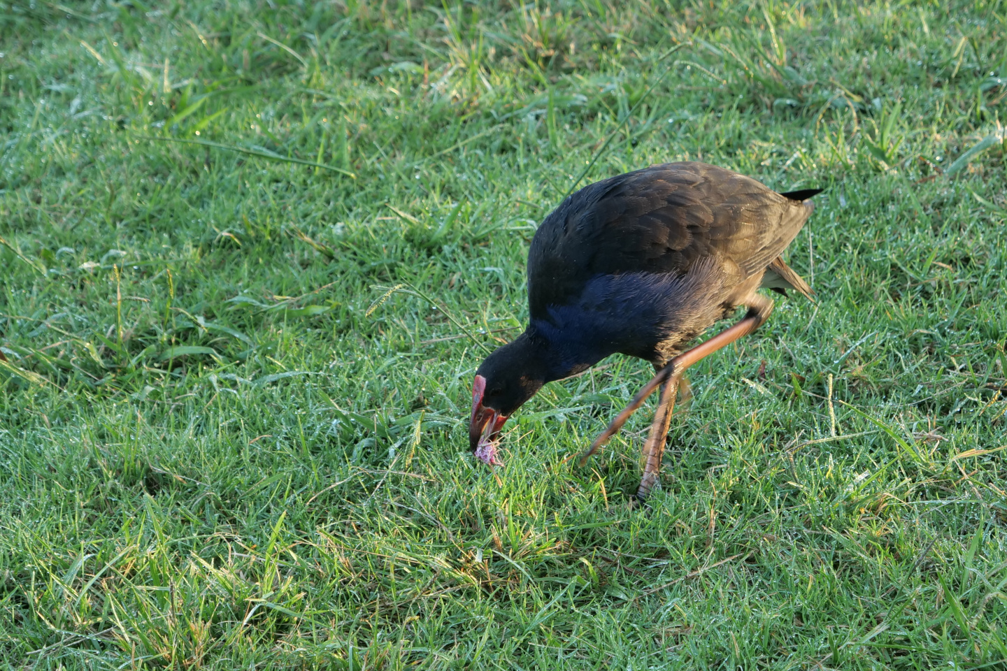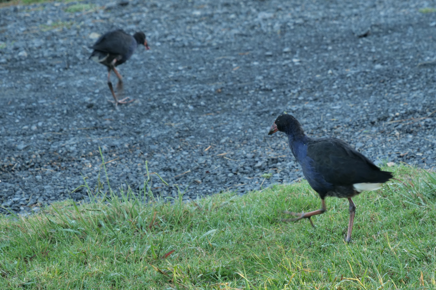 Gesättigt von den vielfältigen Eindrücken in diesen 3 Monaten übernachten wir ein letztes Mal in der Nähe von Auckland inmitten von Pukekos, Hühnern…. mit Blick aufs Meer und die untergehende Sonne.