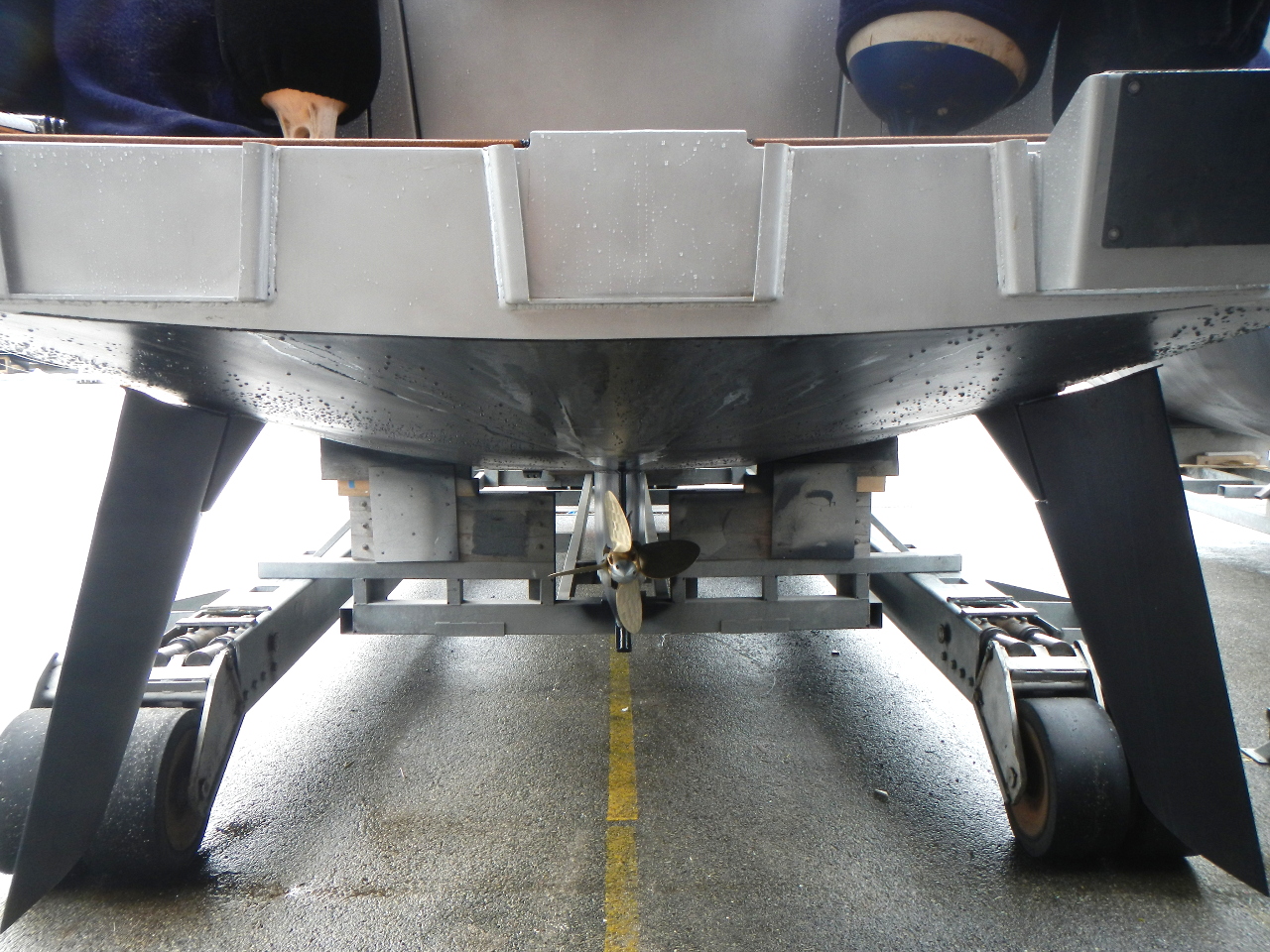 Im untern Bereich vom Rumpf, der im Wasser liegt, muss zwingend mit einer speziellen Farbe (Antifouling) angestrichen werden. Diese sollte verhindern, dass nur wenige Algen und Muscheln sich an den Rumpf ansiedeln.