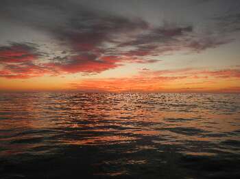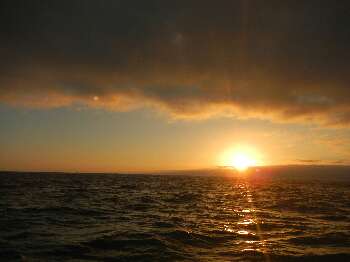 So gegen 5 bekamen wir Besuch von einem grossen Wal. (Keine Ahnung was für einer) 2 mal tauchte er 50 m von Boot auf. Leider sind Wale nicht so 'fotogen' wie Delfine, sie tauchen schnell wieder ab. Delfine begleiteten uns wärend unseren Abendessen.