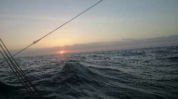 Am Anfang noch langsam, mit der Zeit legte der Wind zu. Damit die Genua (Vorsegel) besser mit dem Wind von knapp hinten steht, setzten wir den Spinnakerbaum. Vor 3/4 Std (kurz nach Mitternacht) müsste ich Helen wecken. Der Wind legte nochmals zu und der Spinnakerbaum müsste wieder weg. Leider steht jetzt das Segel unruhig und dies hört man recht gut unter Deck.