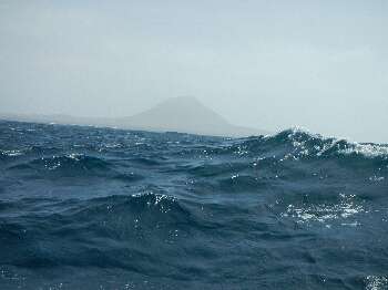 Vorsorglich legten wir das 2. Reff ins Grosssegel. Zwischen den Inseln herrscht ein starker Wind. Auf der Faehre werden immer Kotzttueten verteilt die auch benutzt werden. Bald musste das 3. Reff ins Grosssegel. Die ersten 3 Stunden hatten wir 30 kn Wind, in den Boeen ueber 40.