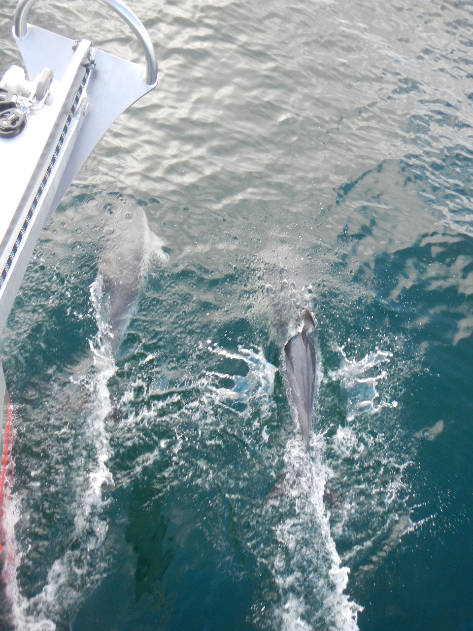 Die Dada Tux „erwacht“ wieder früh morgens. So segeln wir heute an der englischen Riveria vorbei. Mit der „richtigen“ Strömung und etwas achterlichem Wind kommen wir gut voran. Die See ist ruhig und ist (für uns bis jetzt eher an kühle Tage gewohnt) angenehm mild. Es gibt Zeit und gute Bedingungen um unseren neuen Spinackerbaum und den ebenfalls noch nie benutzen, von Hansueli montierten Windpiloten, aus zu probieren. Beides funktioniert erfreulich, bis der Wind uns verlässt. So heisst es erneut motoren. Dafür sahen wir zum ersten Mal auf unserer Reise Tümmler, welche uns eine Weile begleiten. Wie solche Begegnungen die Seele erfreuen können! Gegen Abend kommen wir in Falmouth an und bleiben, bis wir ein gutes Wetterzeitfenster finden um über die Biskaya nach la Corunia zu segeln. (So wie die Wettervorhersage aussieht- starker Wind (bis 50kn) und viel Regen bleiben wir für eine weitere Woche in Falmouth und machen so eine Art Ferien – 10.09.2015)![]()