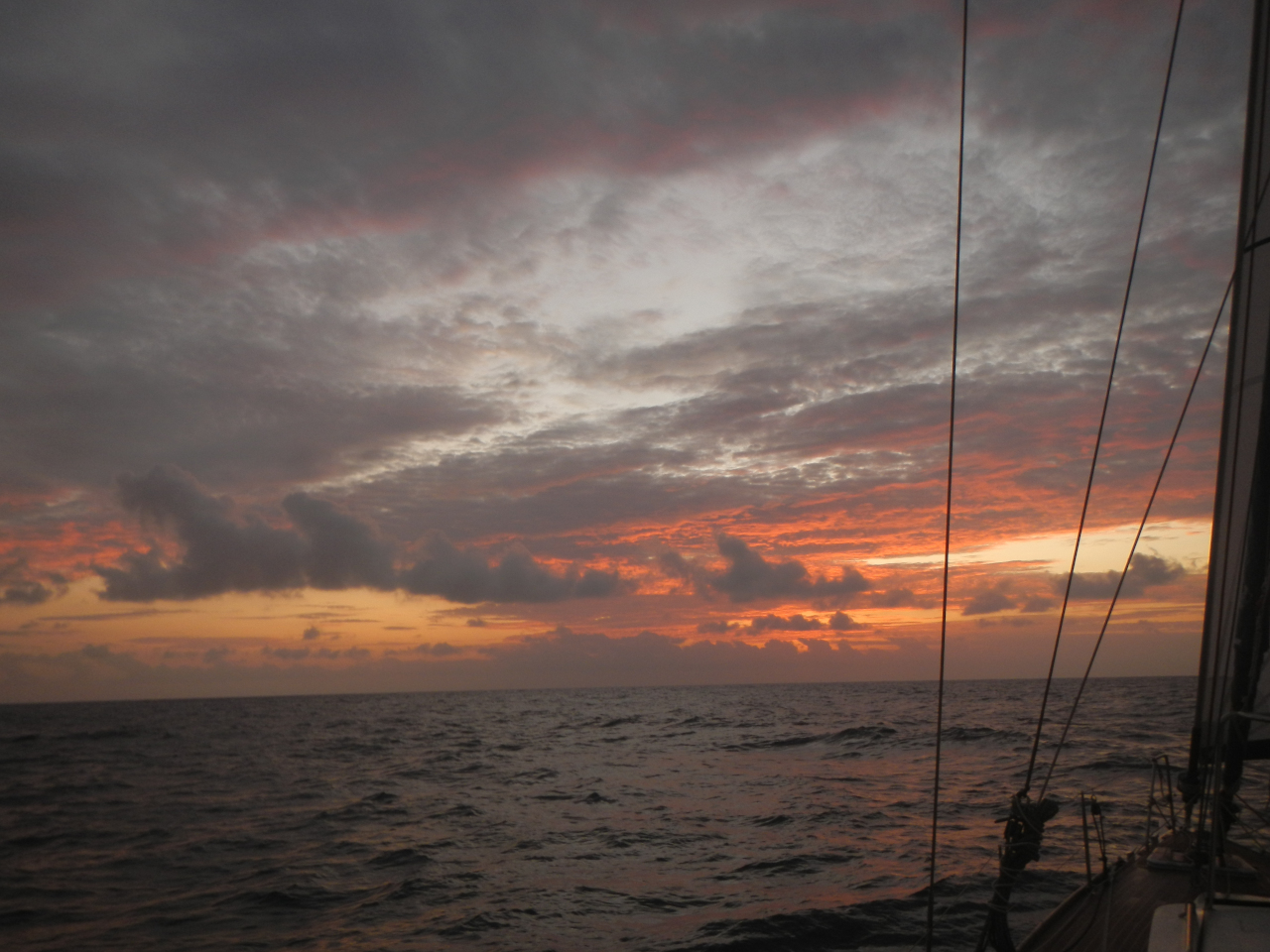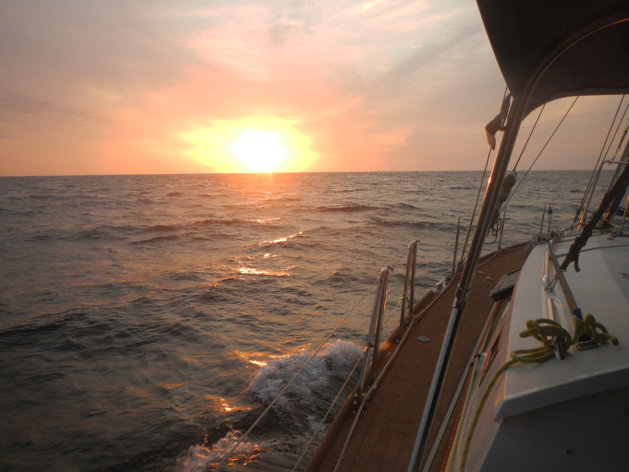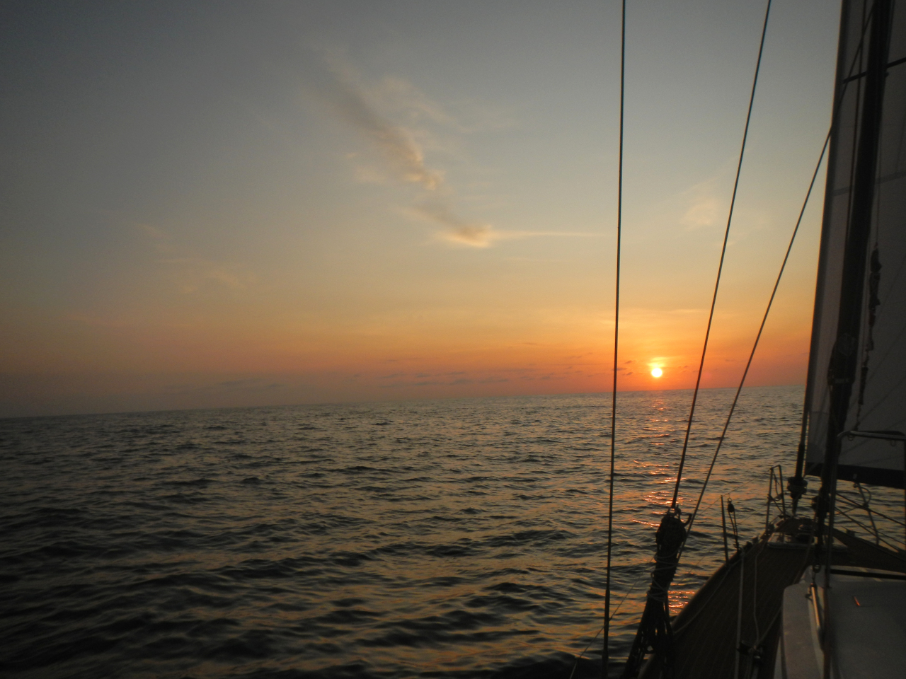 Sonnenuntergang am 24. 2.Kontrolle unserer Windsteueranlage PeterliDelfine