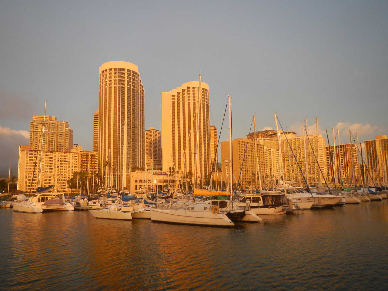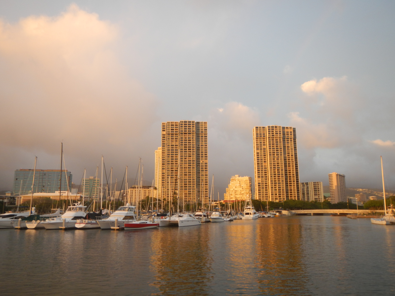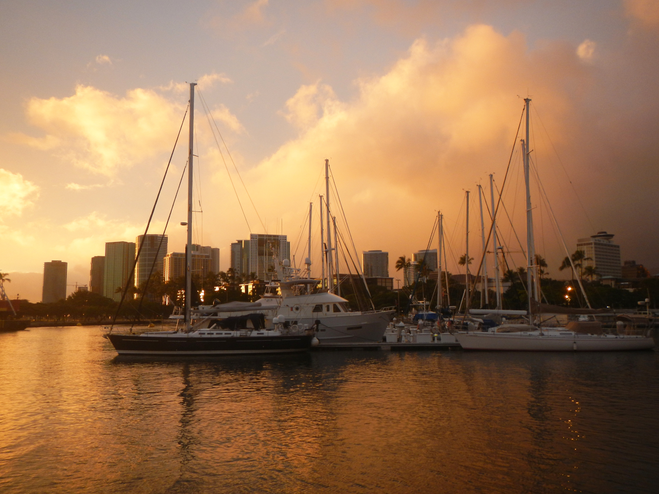 Honolulu in Sicht am 10. 3.provisorisch angelegt am 10. 3.Sonnenuntergang von unserem Liegeplatz aus