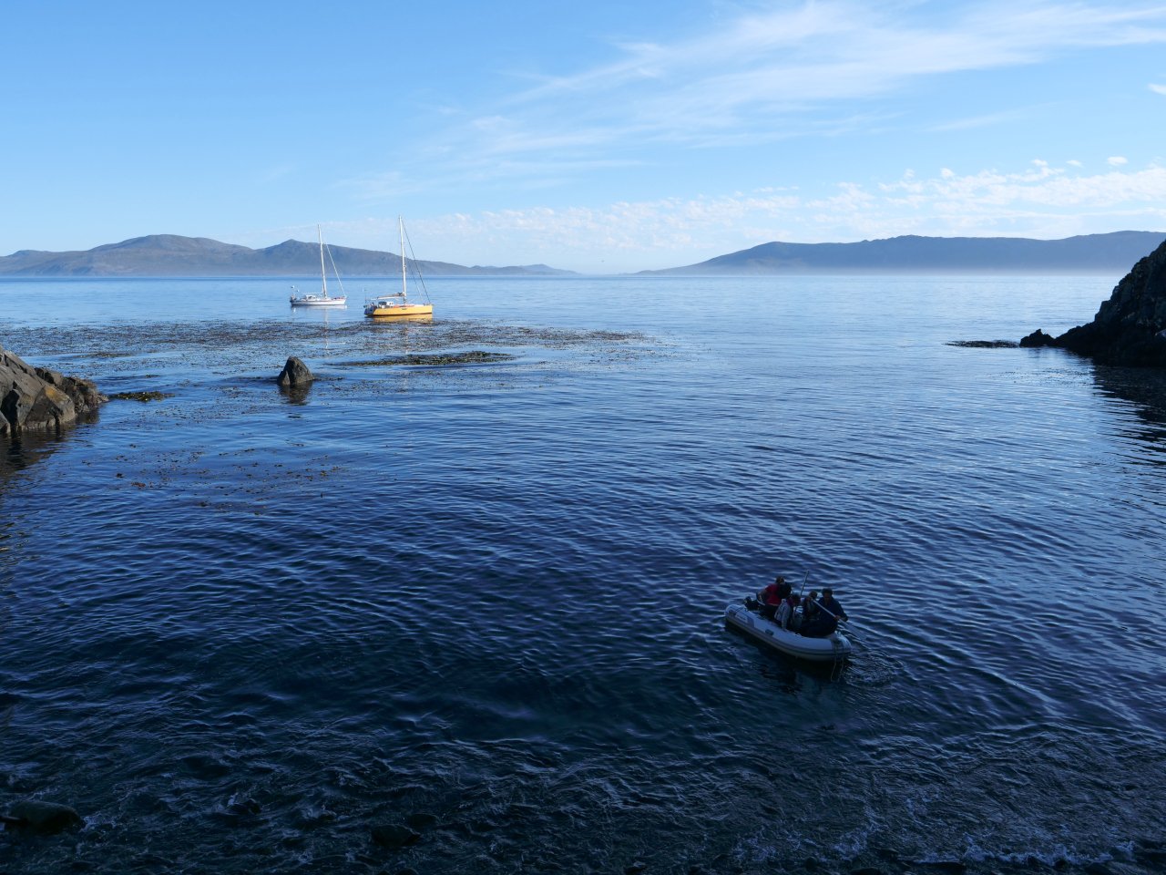 Seglerisch ist die Strecke von Ost nach West eine Herausforderung – Wind und Strömung sind meistens gegen an. Wir jubeln beinahe, wenn kein Wind aufkommt, sich keine Welle aufbaut, eine paradoxe Situationen für SeglerInnen. Der Motor läuft in der Regel, mindestens unterstützend, und die Segel helfen ein wenig. Aufkreuzen kann ein „Treten an Ort“ oder sogar ein Feld zurück sein. Es ist oft regnerisch, verhangen und für sommerliche Verhältnisse sehr kühl. Morgens ist es im Schiff so ungefähr 10° Celsius, feucht trotz der Doppelverglasung und wir sind froh über die Heizung. Für uns bewährt hat sich eine Heizdecke, welche wir etwa eine halbe Stunde vor dem zu Bett gehen anstellen. So schlüpfen wir in ein warmes trockenes Bett.