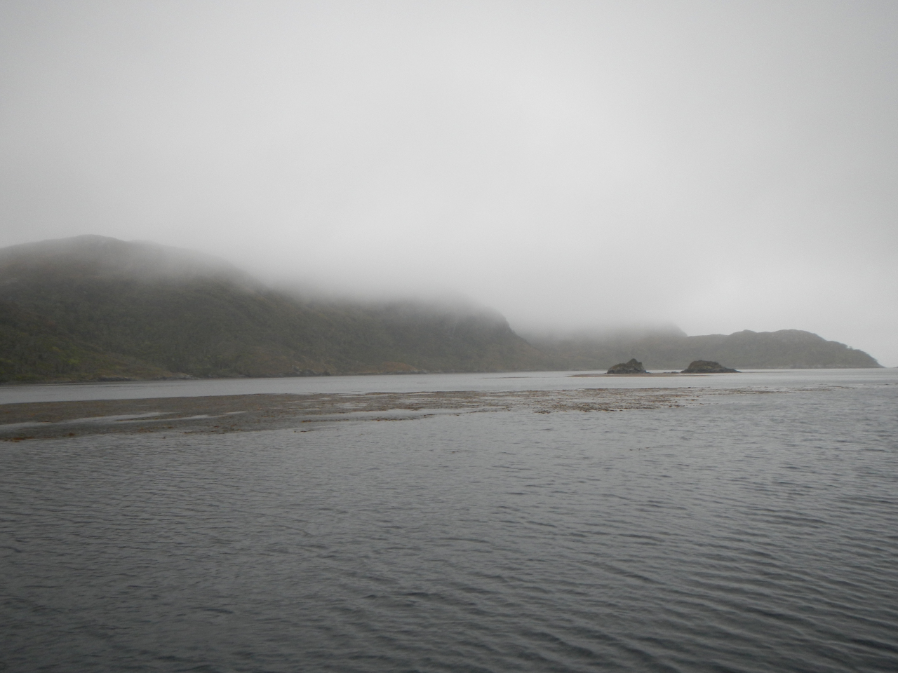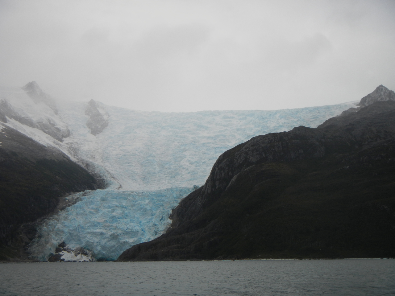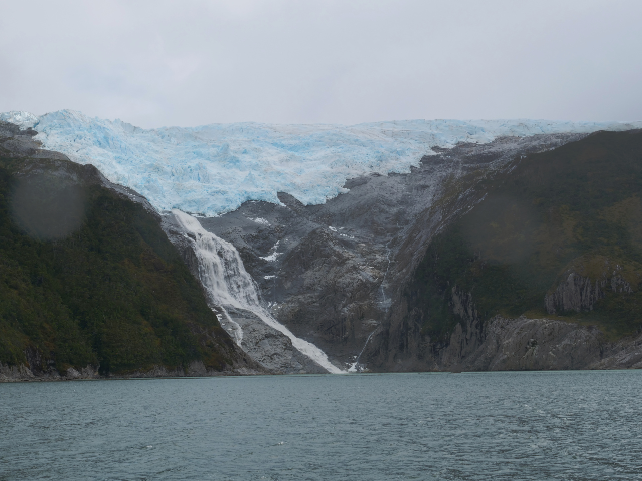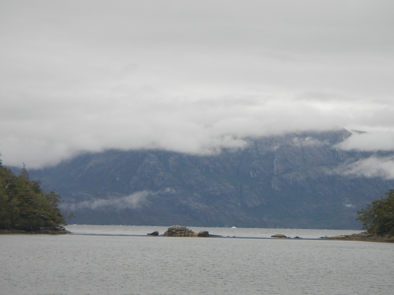 Entschädigt werden wir durch die eindrücklichen Landschaften, die sich ab und zu ganz zeigen. Gletscher, vor allem im Beaglekanal, Schneeberge, jedoch sehr wohl im verhangenen Zustand ihren Reiz haben, das einzigartige Lichtspiel, die zerfurchte, zerklüftete Inselwelt, kahle nackte Felsen, wie Elefantenhaut unter dem Mikroskop aussehend, die kleineren und grösseren Eisberge, welche tagelang wie eine Karawane an uns vorbei ziehen. Die angedachten „Besuche“ in die Gletscherkanäle, Seno Pia und Seno Ventisquero, lassen wir in Folge dichtem Nebel aus. Nicht zu vergessen die zahlreichen Wasserfälle, die sich von hoch oben, manchmal teilend, ins Meer stürzen, die grünen Bäume an den windgeschützten Orten. Kein Stamm ist gerade gewachsen, jeder „erzählt“ seinen Werdegang.