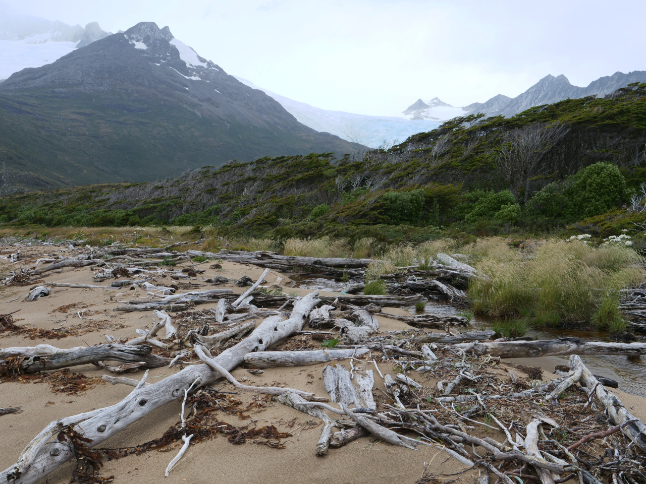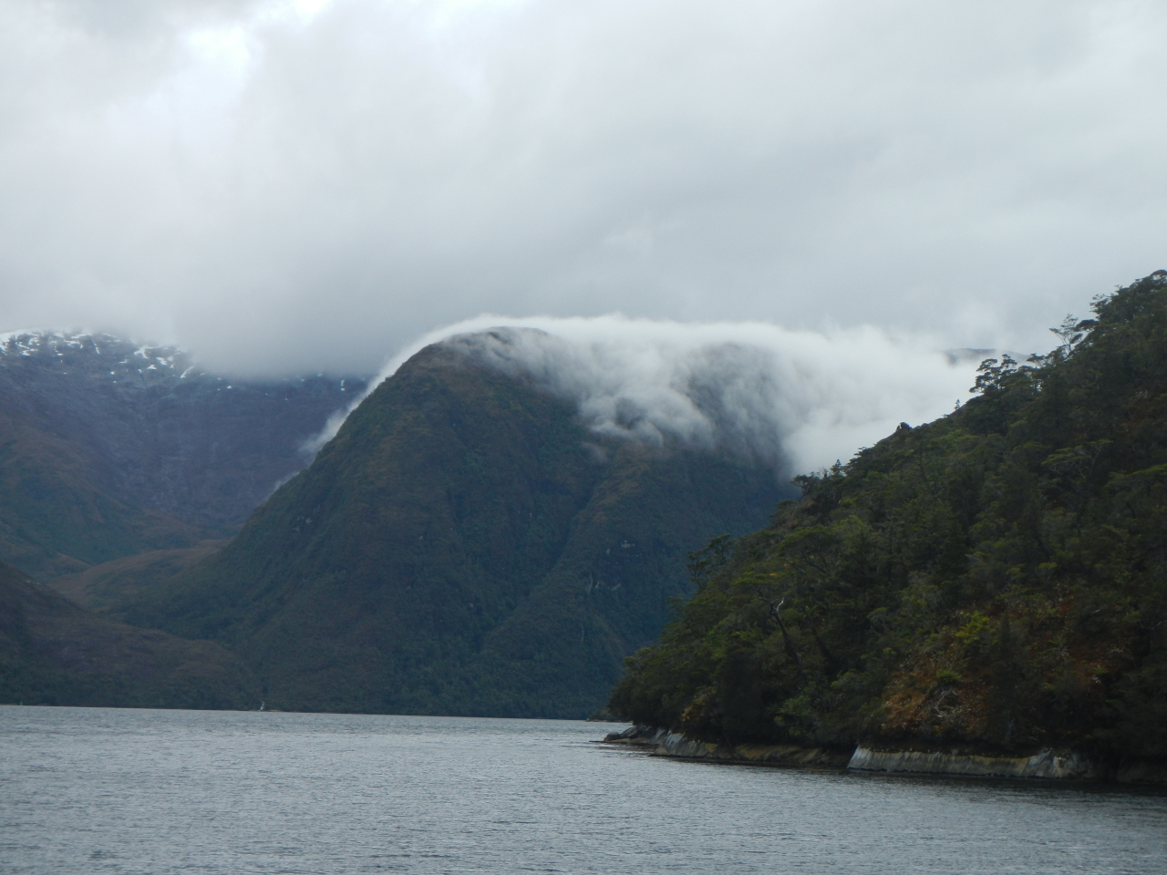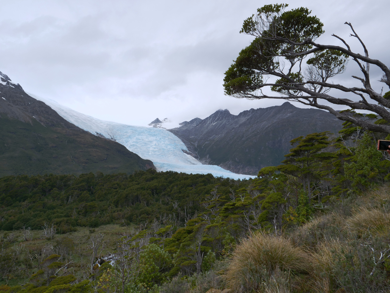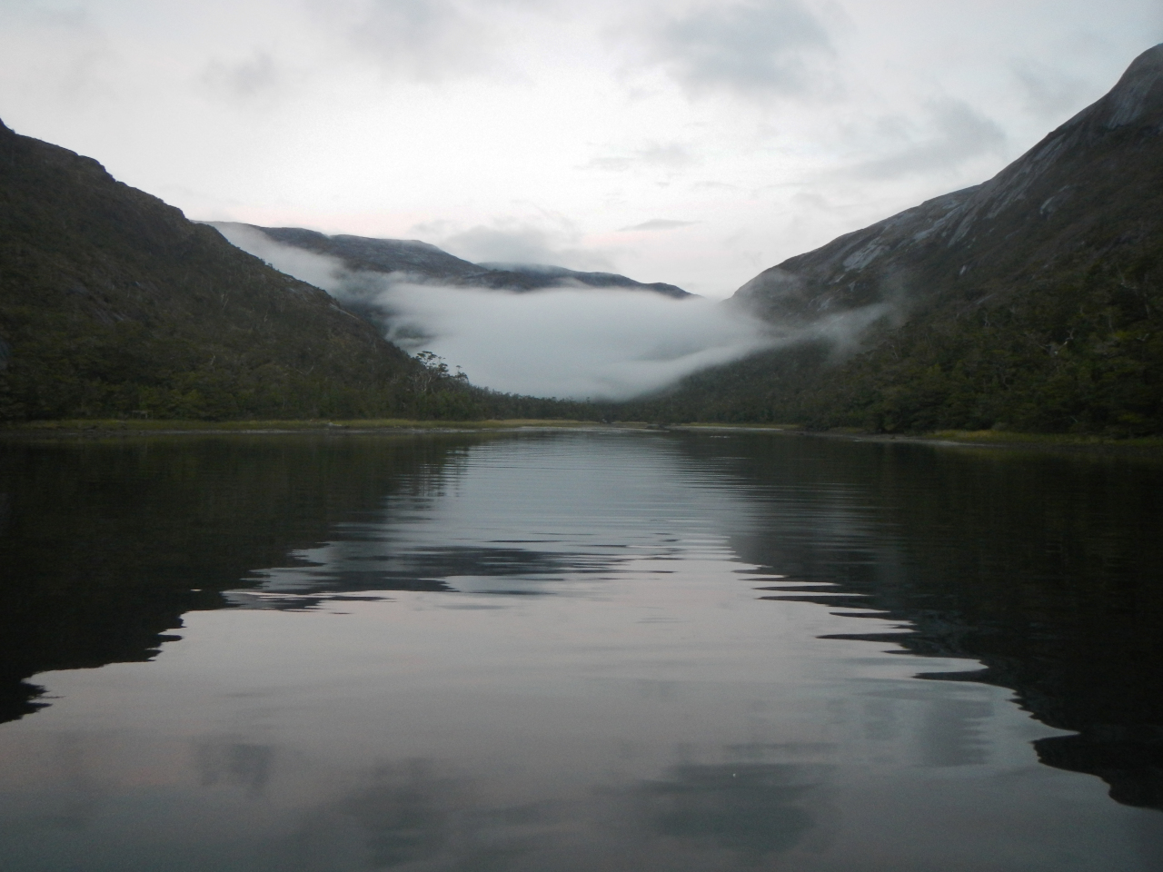 Entschädigt werden wir durch die eindrücklichen Landschaften, die sich ab und zu ganz zeigen. Gletscher, vor allem im Beaglekanal, Schneeberge, jedoch sehr wohl im verhangenen Zustand ihren Reiz haben, das einzigartige Lichtspiel, die zerfurchte, zerklüftete Inselwelt, kahle nackte Felsen, wie Elefantenhaut unter dem Mikroskop aussehend, die kleineren und grösseren Eisberge, welche tagelang wie eine Karawane an uns vorbei ziehen. Die angedachten „Besuche“ in die Gletscherkanäle, Seno Pia und Seno Ventisquero, lassen wir in Folge dichtem Nebel aus. Nicht zu vergessen die zahlreichen Wasserfälle, die sich von hoch oben, manchmal teilend, ins Meer stürzen, die grünen Bäume an den windgeschützten Orten. Kein Stamm ist gerade gewachsen, jeder „erzählt“ seinen Werdegang.