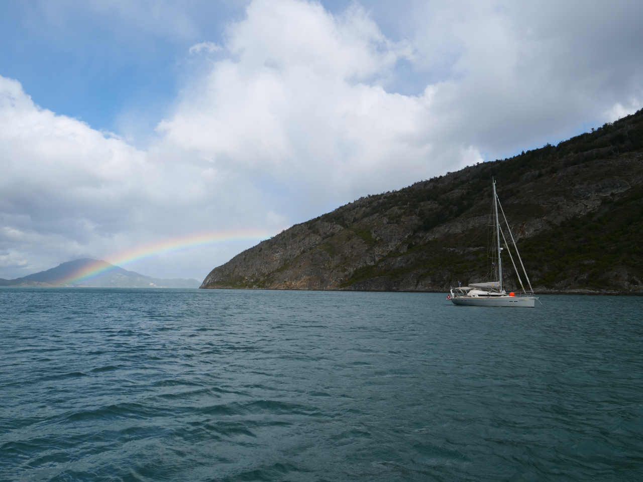 Bis Puerto Eden (etwa 660 nm von Puerto Williams entfernt) ankern wir in 13 Buchten, meistens alleine, einige Male mit der SY Kama*, wettern einige Tage im Beaglekanal (Caleta Ferrari und Caleta Olla) und im Canal Cokburn ab und gelangen nach 20 Tagen bis nach „Eden“. Hier liegen zur Zeit 4 SY, was kaum je vorkommt. SY Kama* mit Margrit, Katja und Ernst, sind bis jetzt in etwa die gleichen Tage und die selben Strecken unterwegs. Wir sprechen uns über Funk, in der gleichen Bucht treffen wir uns zum Apéro, Znacht und/oder machen gemeinsame Landausflüge. Es gibt eine gewisse Sicherheit, auch wenn man sich nicht sieht, zu wissen, dass ein anderes Schiff in der Nähe ist und ggf. Hilfestellung bieten oder mindestens holen kann.