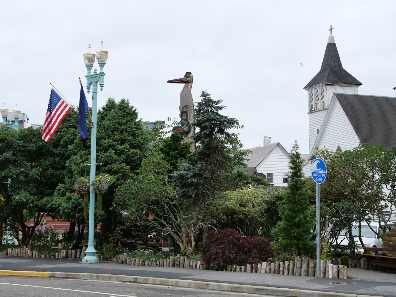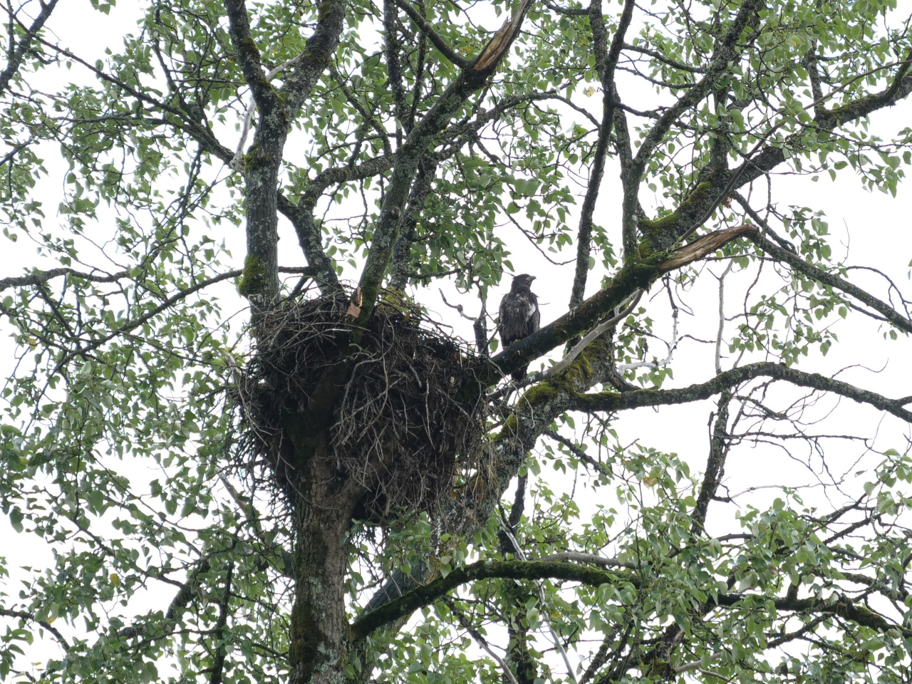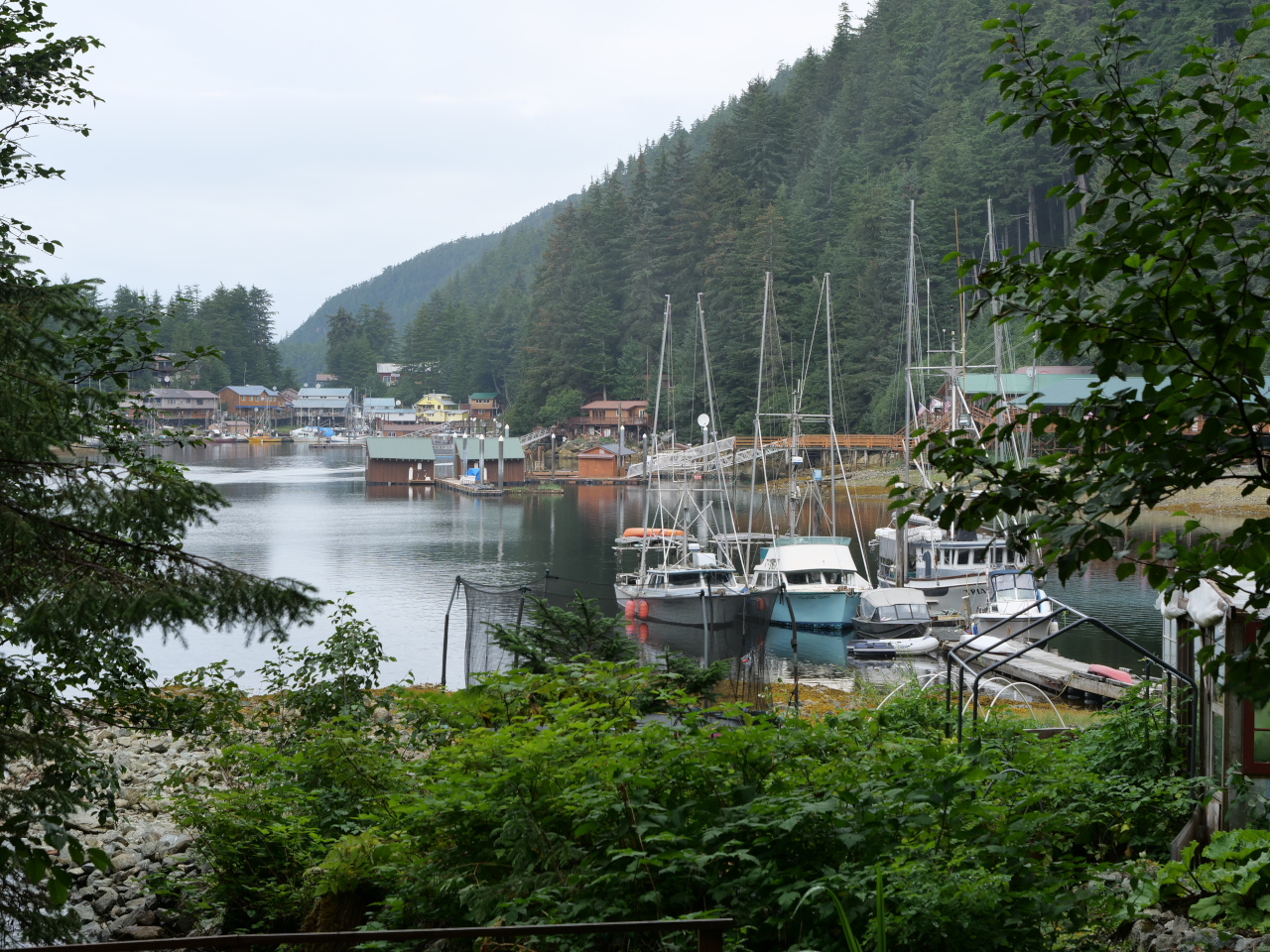 Neka Bay (Port Frederick), so steht es im Segelführer, ist ein guter Ankerplatz wo man mit dem Dingi ein Riff besuchen, Wale und Bären beobachten kann. Bei der aktuellen Wetterlage entscheiden wir uns jedoch die 16 NM (hin und zurück) zu «sparen» und in Hoonah (Port Frederick) an zu legen. Hoonah ist die grösste Tlingitsiedlung im Südosten Alsakas. Die Einwohner zeigen deutliche Spuren dieser Ureinwohner. Verschiedene Totems sind im Dorf zu sehen. Die meisten sind farbenprächtig mit unterschiedlichen Motiven, einige Natur belassen und an einem Ort entsteht ein neues Totem. Eine Dorfbewohnerin macht uns auf ein Adlernest mit Jungen aufmerksam. Ansonsten ist das Dorf ausgestorben. Den Hafenmeister finden wir nicht, die Schule ist geschlossen, keine Kreuzfahrtschiffe sind weit und breit zu sehen. Diese warten oft hier um auf gutes Wetter für einen Besuch in die Glacier Bay zu warten.