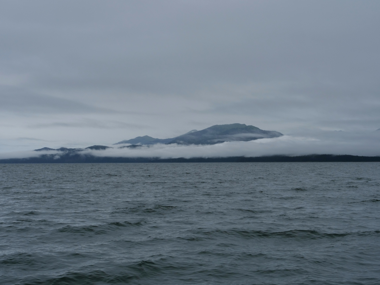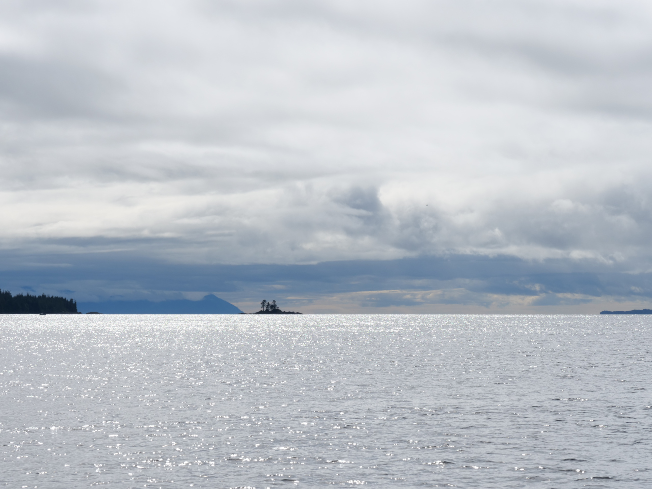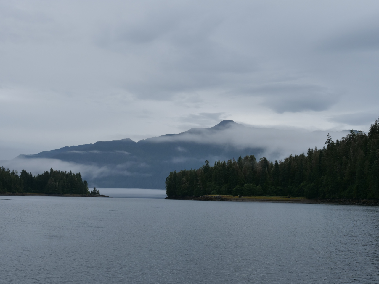Wrangell Narrows gilt es bei sehr unterschiedlichen Wetterverhältnissen zu bewältigen, eine Meerenge die bei Ebbe zwischen den Inseln Kupranof und Mitkof kaum tiefer als 7 Meter. Dazu kommt eine gewaltige Strömung die etwa in der Hälfte der Strecke gegenläufig ist. Für die Grossschifffahrt nicht passierbar fahren doch Schlepper mit gut beladenen Containerschleppflossen durch und geben über Funk jeweils ihre Position durch, damit man an den engsten Stellen Raum geben kann. Die Uferlandschaft, welche wir teilweise erhaschen, ist pittoresk mit schmucken Häusern, Fischerbooten und üppigem Sträuchern und Bäumen gespickt.