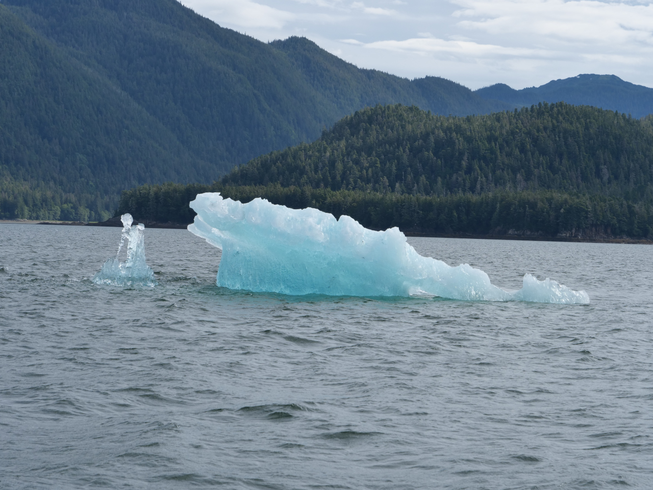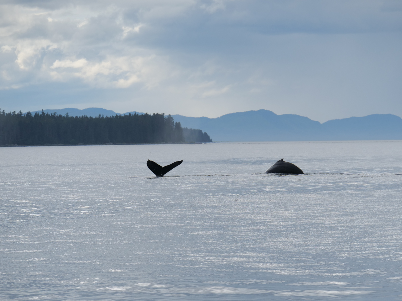 Um 04.45 ist Tagwache. Die vorgesehene Ankerbucht im Tracy Arm an der Stephanspassage gelegen lassen wir aus. Haushohe Eisblöcke schwimmen aus dem Arm und «verzieren» die Gegend. Sandburn Canal (Port Houghton) erreichen wir am Nachmittag bei strömendem Regen und starkem Wind. Dafür dürfen wir beim Eintritt in Port Houghton einmaliges erleben. Von weitem sehen wir zahlreiche Blase. Mindestens 30 Buckelwale scheinen auf gemeinsamer Nahrungssuche zu sein. Knapp unter der Wasseroberfläche gleiten sie dahin, tauchen kurz auf, blasen, verschwinden….Welch ein Schauspiel. Das erste Mal hören wir den Gesang der Wale, unbeschreiblich. Ich kriege Gänsehaut. Eine US Segelyacht mit einer grossen ecuadorianischen Flagge an der Saling sowie ein Fischerboot teilen mit uns diesen sicheren Ankerplatz. Durch das nasskalte und neblige Wetter kommen die Landausflüge zu kurz. Es ist einfach nicht «anmächelig» und so backen wir Kuchen und lassen es uns kulinarisch gut gehen. Durch den Frederick Sound gelangen wir nach Petersburg. Dieser Ort wurde von norwegischen Einwanderern um die Jahre 1890 gegründet. Ein hübscher Ort der mit seinen Blumengärten und speziell gemalten Häusern viel von seinem skandinavischen Flair behalten hat. Hier treffen wir wieder auf die SY Luna Mare und SY Aloha. Bei einem gemeinsamen Nachtessen auf der Dada Tux spinnen wir etwas Seemannsgarn, tauschen jedoch ebenfalls Informationen aus für die Weiterreise.