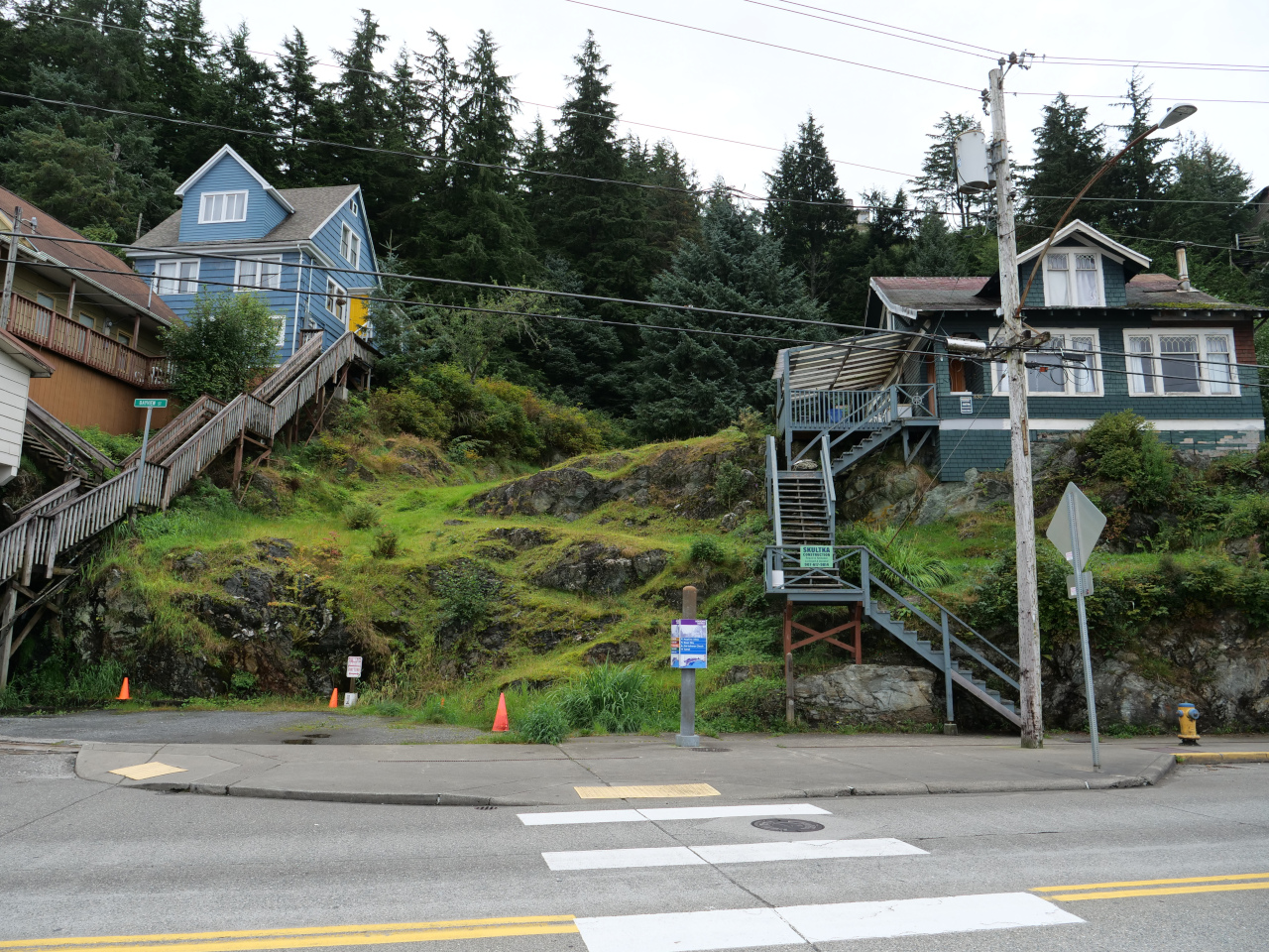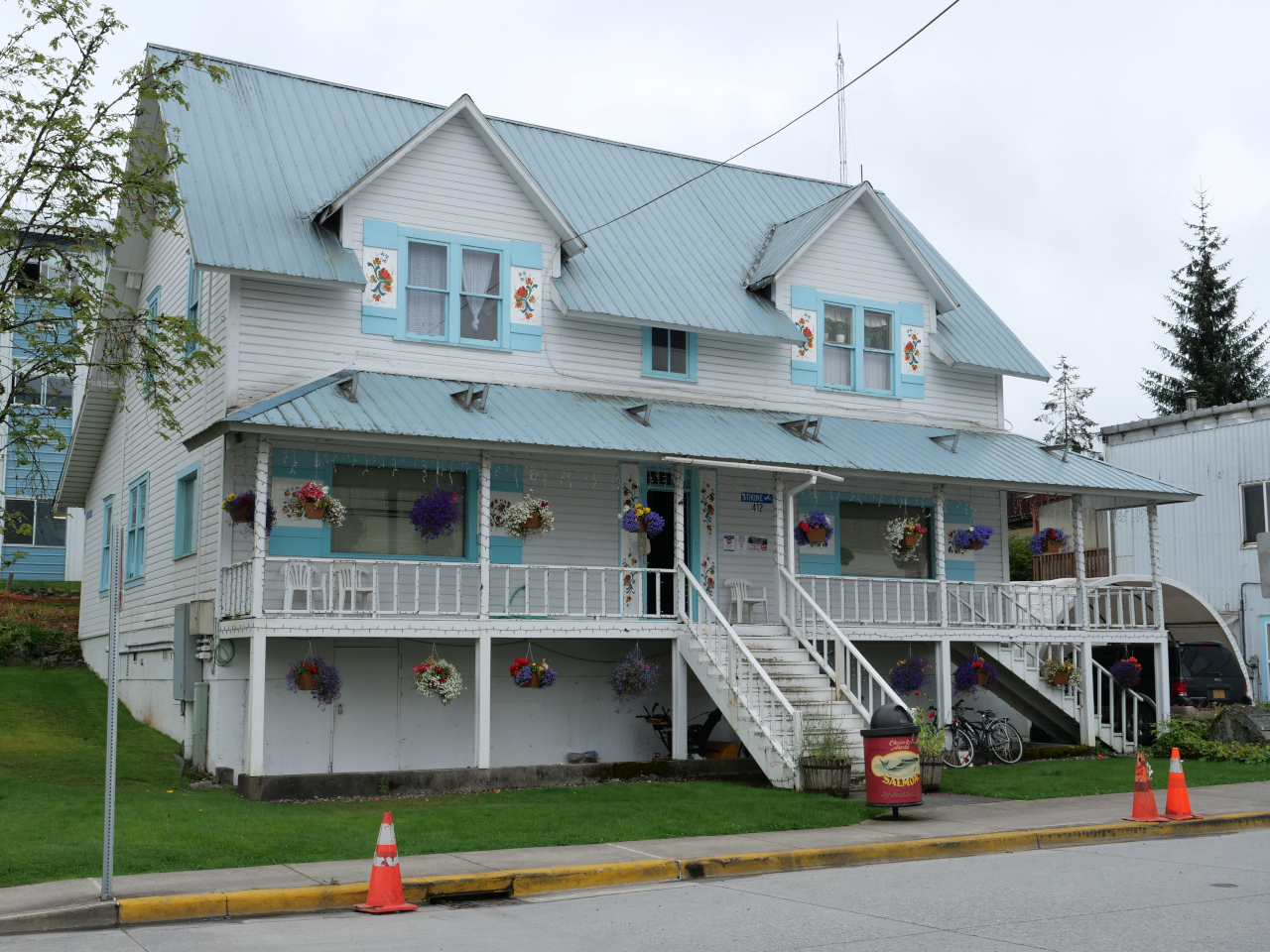 Anderntags besuchen wir die Hauptstadt Juneau mit dem Bus. Dieser ist gratis wegen Covid-19. Juneau wurde nach den Goldfunden von Joseph Juneau und Richard Harris bekannt. Die Stadt ist charmant, eine bunte Mischung von malerischen Gebäuden, viktorianischen Villen und gläsernen Neubauten. Die Mount Roberts Tramway, eine Gondelbahn führt auf den Hausberg, Mount Roberts, von wo das steil aufragende Bergmassiv des Mount Juneau zu erreichen ist. Leider ist dieser Tag ebenfalls verregnet und verhangen und wir verzichten auf diesen bei guter Sicht sehr attraktiven Ausflug.