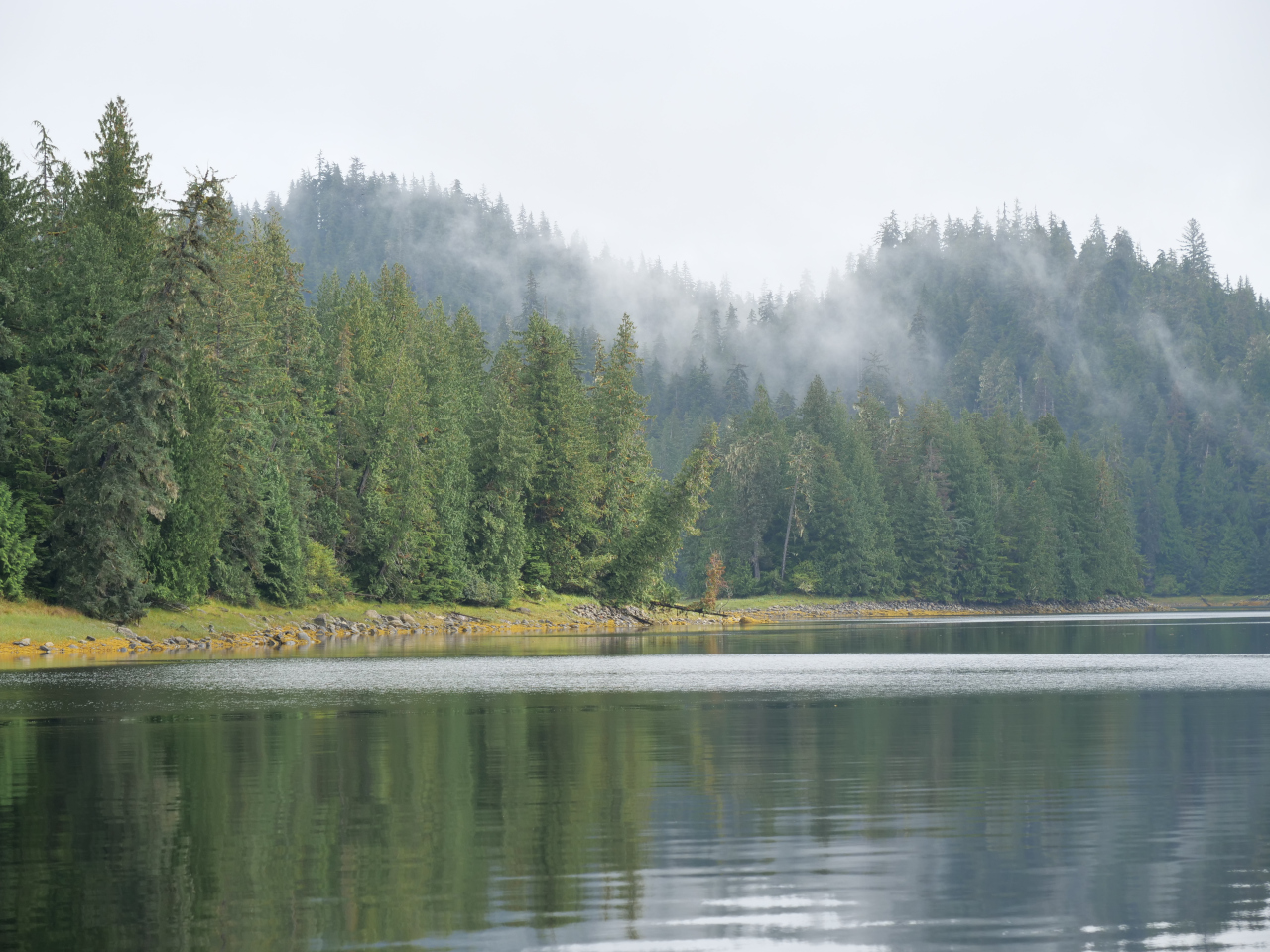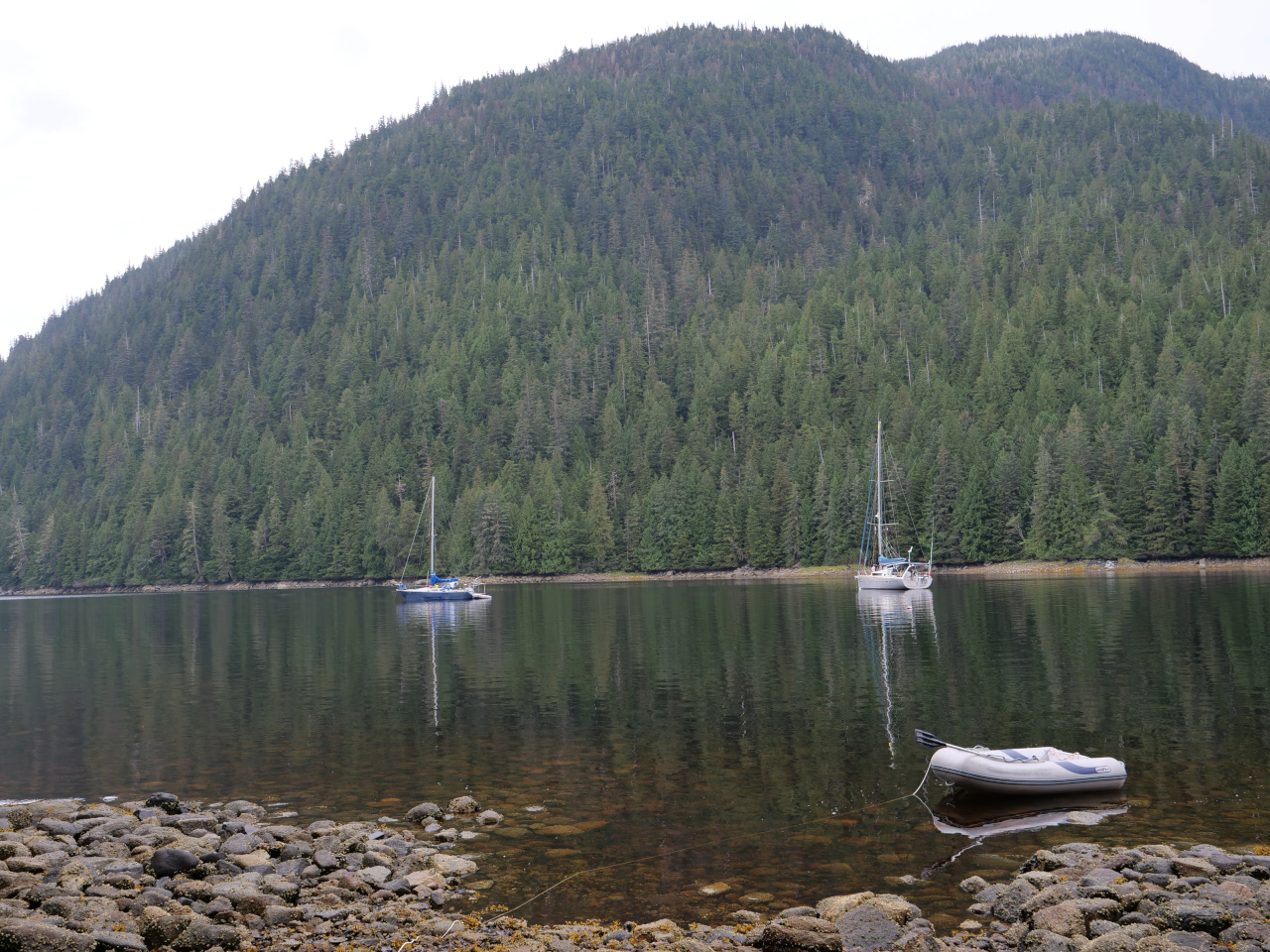 In Wrangell, der zweitältesten Siedlung Alaskas legen wir als nächstes an. Hier hatten lange die Russen das Sagen und es war ein wichtiger Pelzhandelsposten der Hudson`s Bay Company. Dadurch das Wrangell nicht von grossen Kreuzfahrtschiffen angelaufen werden kann, hat es seinen «Dorfcharkter» erhalten. Ein kurzer fast trockener Spaziergang durchs Dorf an Totempfählen und Gassen vorbei gibt uns einen kleinen Einblick von diesem Ort. Das Wetter ist uns nach wie vor nicht gut gesinnt; Regen und Starkwind sind fast täglich angesagt. So überspringen wir wiederum einen geplanten Ankerplatz und steuern durch die sehr hübsche, mit vielen kleinen Inseln unterbrochene Zaremba Strait Richtung Ernest Sound in das St. Anna Inlet (wo ein Bach vom Lake Helen in das Inlet fliesst). Eine Motoryacht mit Eignern aus Südkalifornien und ein Segelboot suchen ebenfalls Schutz für die kommenden zwei Tage. Wir lernen uns gegenseitig ein wenig kennen. Es ist immer wieder interessant einen Ausschnitt aus den sehr unterschiedlichen Lebensbiographien zu hören.