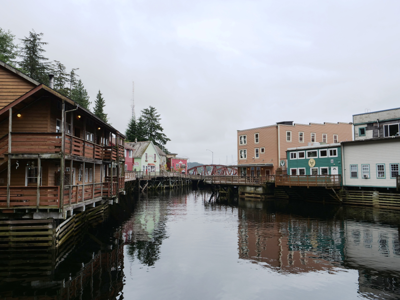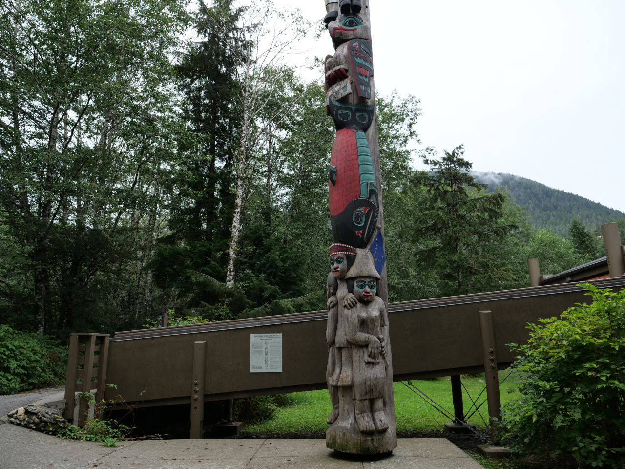 Der letzte südlichste Hafen in Alaska welchen wir anlaufen ist Ketchikan. Ein ehemaliges Tlingit Dorf welches an der Mündung des Ketchikan Creek gebaut wurde. Beim Goldrausch um 1900 entwickelte sich hier ein Vergnügungsviertel. Die historische Creek Street ist heute ein Anziehungspunkt für Besucher und wirklich ein hübscher Ort. Unweit davon im Tongass Historical Museum ist die Geschichte dieser Gegend anschaulich dargestellt. Wir besuchen die Lachsleiter im Kechtikan Creek. Diese wurde bei einer starken Stromschnelle aufgebaut, damit die Lachse den Bach hinauf können zum laichen. Im Totem Heritage Center lernen wir viel über die Totems. Aus roten Zedern geschnitzt sind sie Zeugnis von Geschichten und Familienchroniken. Die Totems finden sich nur in Südostalaska, an der Küste Britsch Kolumbiens und im State Washington.