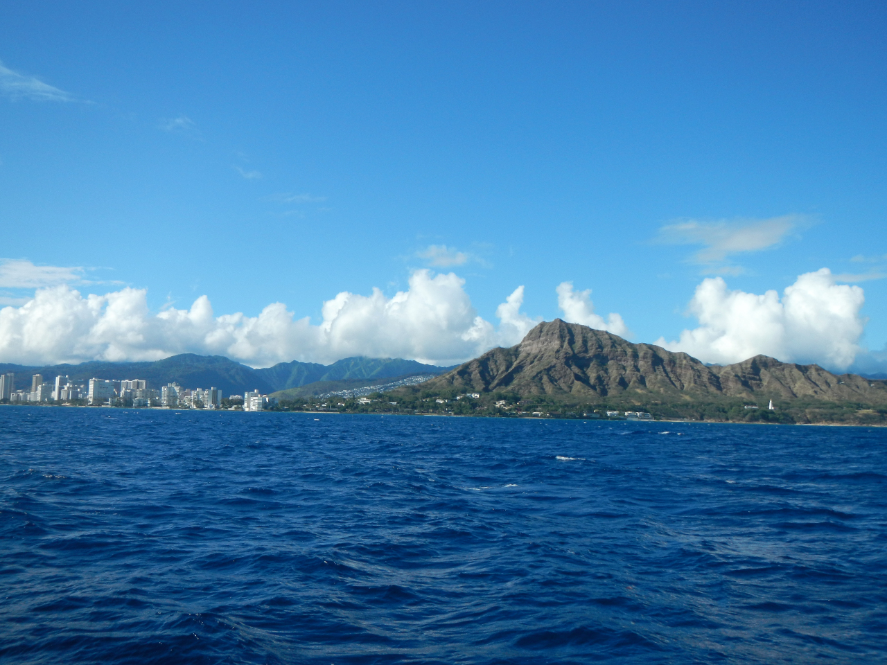 Beim zweiten Versuch umrunden wir die Insel unter Motor und Segel bis zur Kaneohe Bay auf der Ostseite. Üppig, in einer Vielfalt von Grüntönen, empfangen uns die steilen bis ins Wasser ragenden Felsen. Im Meer faszinieren uns die kleinen und grösseren Inseln, manchmal einfach die unterschiedlichen, aus dem Wasser ragenden Felsformationen, das untiefe Wasser, teilweise kaum eine Handbreit unter der Oberfläche mit den entsprechenden Wasser – Farbunterschieden, ein grossartiges Schauspiel. Auf dem Weg zurück zur «Heimbasis» begrüsst uns ein Buckelwal, jedes Mal ein Ereignis. An der Südküste stecken wir unseren Bug in eine der schönsten und bekanntesten Buchten auf Oahu, der Hanauma Bay. Sie ist immer noch geschlossen und so sehen wir sie «jungfräulich» Menschen leer.