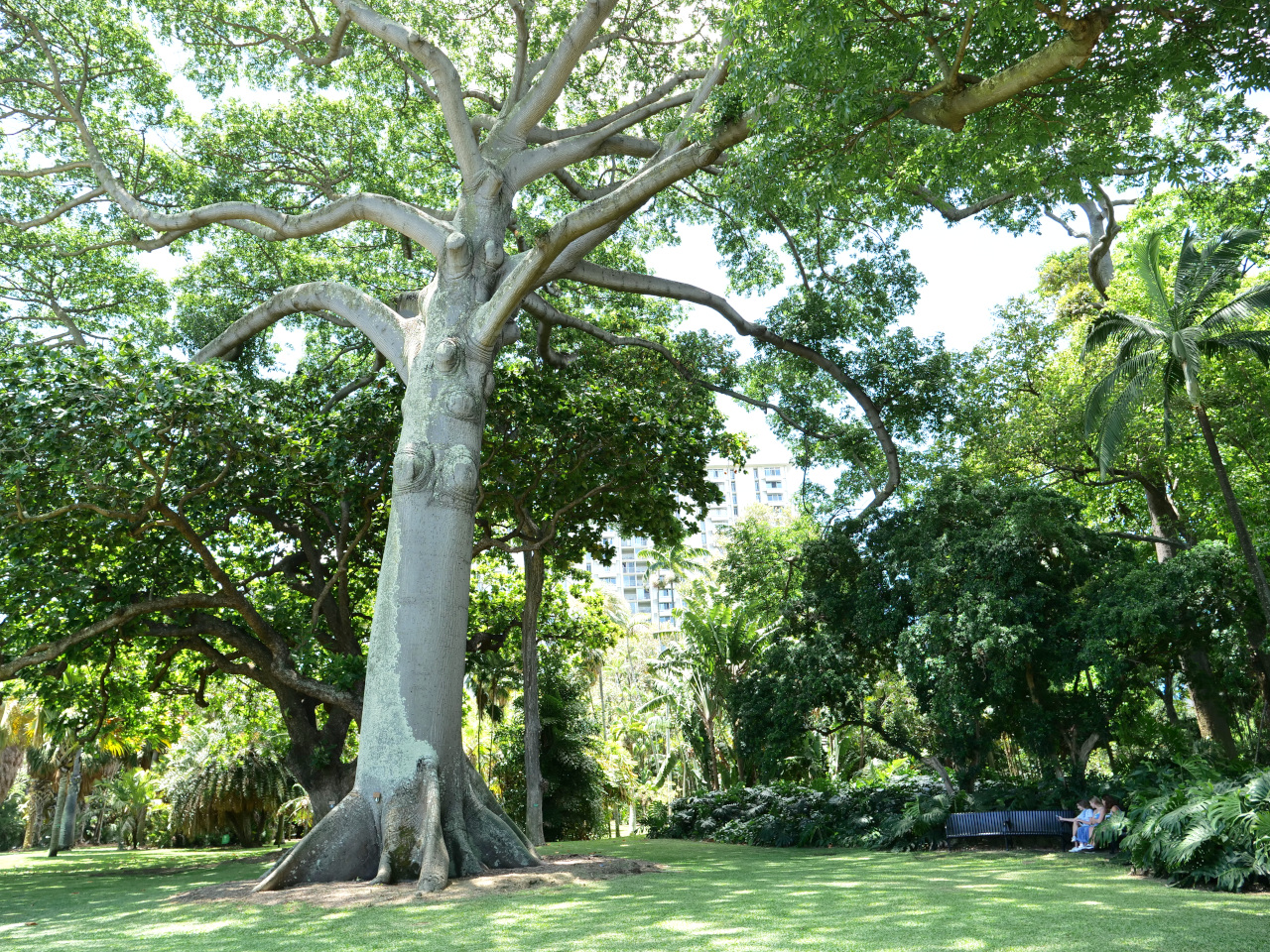 Den Forster Botanik Garten erreichen wir mit unseren Fahrrädern innerhalb einer halben Stunde. Der Macadamia Nut Baum trägt die bekannte wohlschmeckende hawaiische Nuss. Gesättigt von diversen Sinneseindrücken kehren wir auf die Dada Tux zurück.