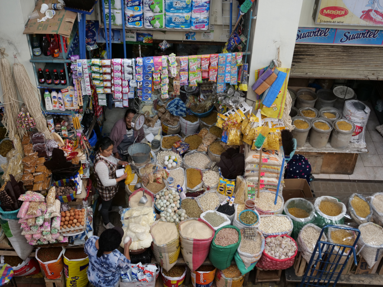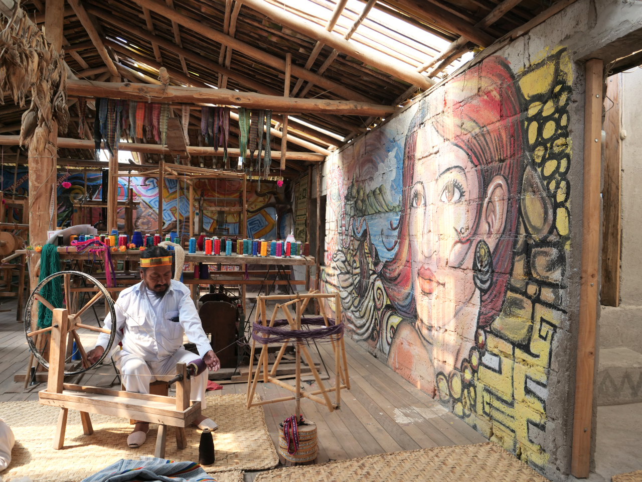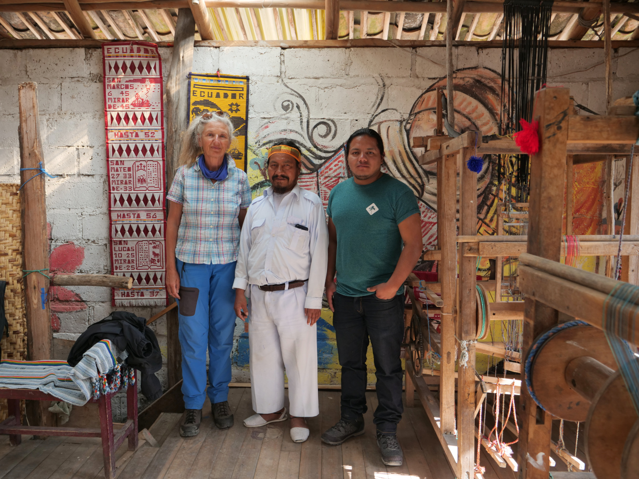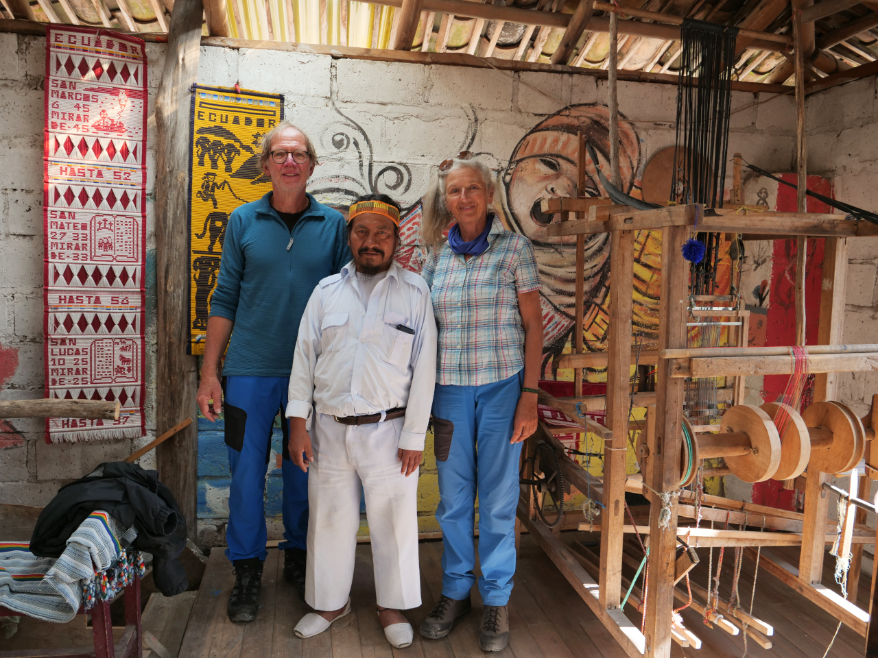 Zur Laguna Cuicocha, einem Kratersee mit zwei Inselchen unter Naturschutz, führt uns Diego, ein Indigener von 27 Jahren. Wir erfahren viel von der indigenen Tradition, welche in Otovalo und Umgebung gelebt wird. Erst seit wenigen Generationen sind die Indigenen gleichberechtigt, können Schulen besuchen etc. Sein Vater sei des Lesens und Schreibens unkundig, seine Mutter habe mit 18 Jahren etwas lesen und schreiben gelernt. Ihr «Neujahr» beginnt am 21. März und das grösste Fest ist der 21. Juni (Dauer vom 19. bis 24. Juni). Rivalitäten unter den höher und den niedrigen gelegen Dörfern verlaufen teilweise «blutig». Es gibt 13 Führer die «unantastbar» sind. Ein Andenwolf mit seinem buschigen Schwanz kreuzt kurz unseren Weg. Den berühmten Handwerksmarkt in Otovalo besuchen wir kurz (nicht alles ist Kunst), schauen bei den Lederarbeiten, einer traditionellen Musikwerkstatt und einer Weberei vorbei. Beim letzteren gefällt es mir am besten. Der Websaal ist eingerichtet, dass die BesucherInnen selbst weben können. Nun sind wir stolze BesitzerInnen eines selbst angefertigten Armbandes. Diego und der «Webmeister «verständigen sich in Kichwa. Bis anhin meine ich, dass die Sprache Quechoa heisst und erfahre nun, dass es beides gibt. Quechoa in Bolivien, Peru und eben Kichwa oder Quichua in Ecuador.