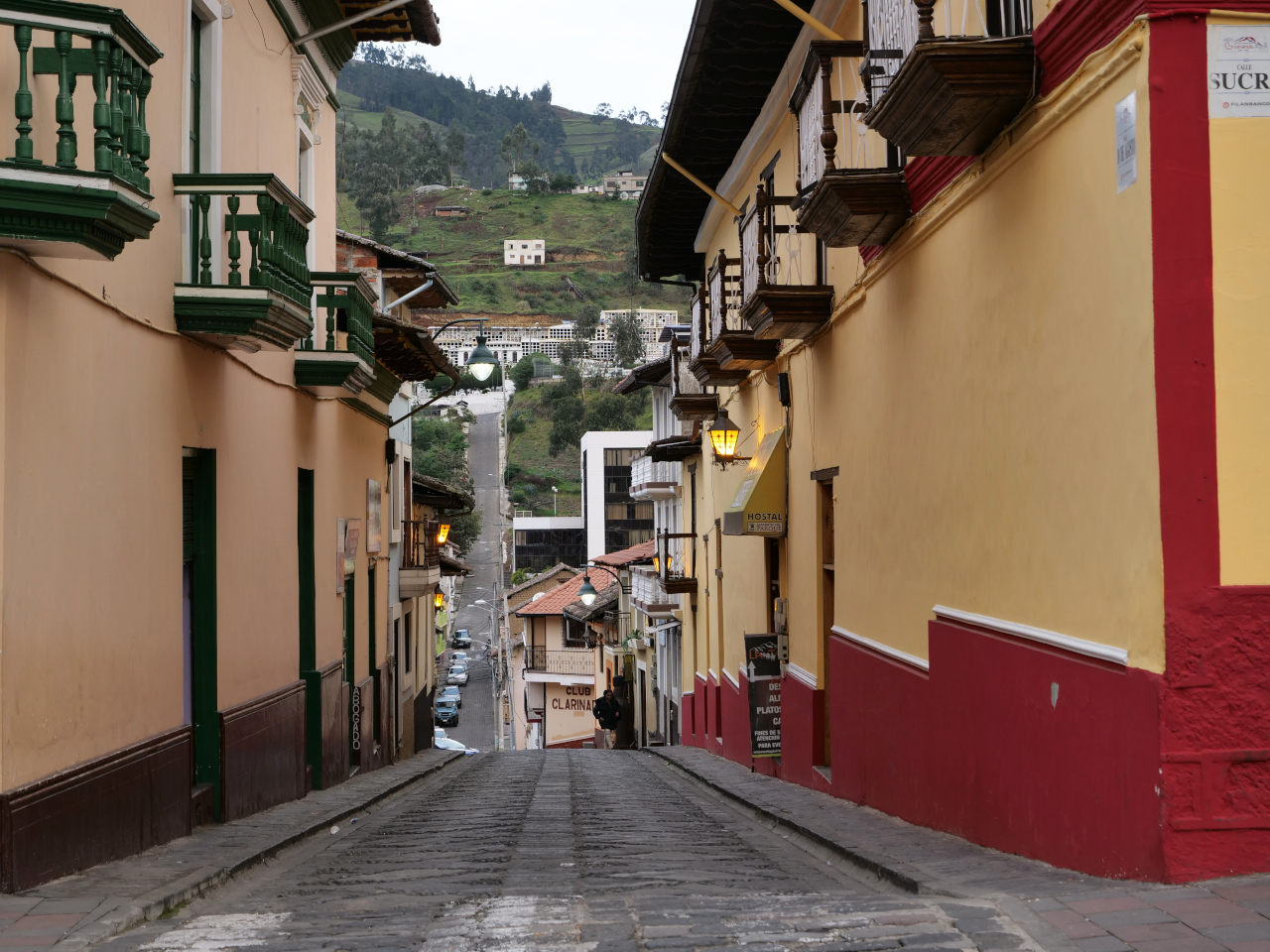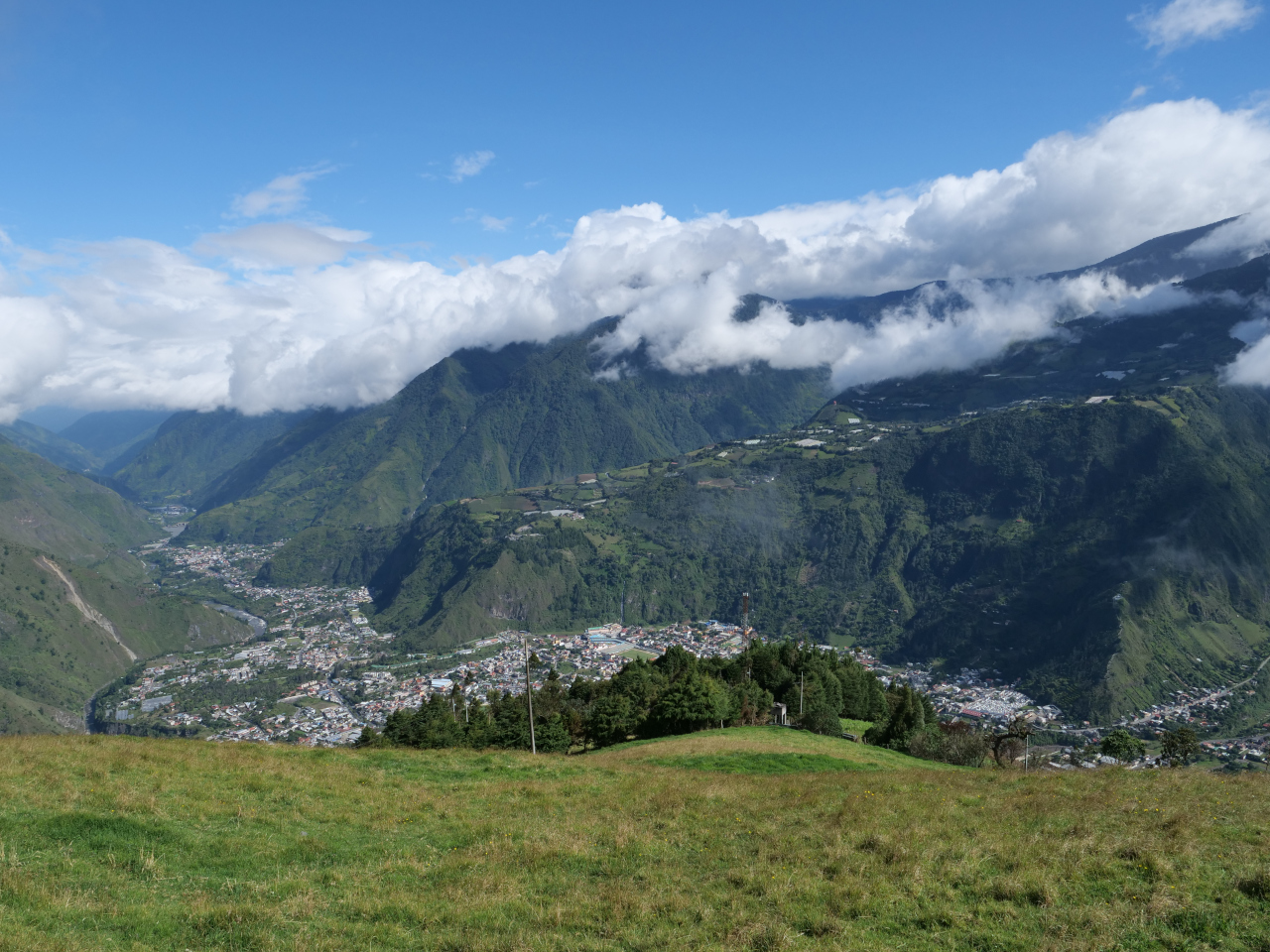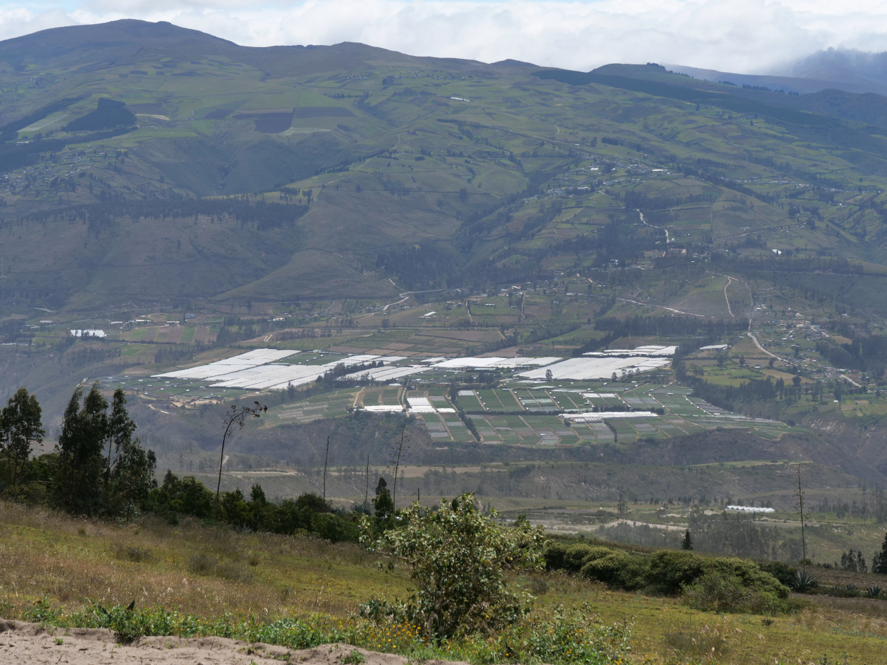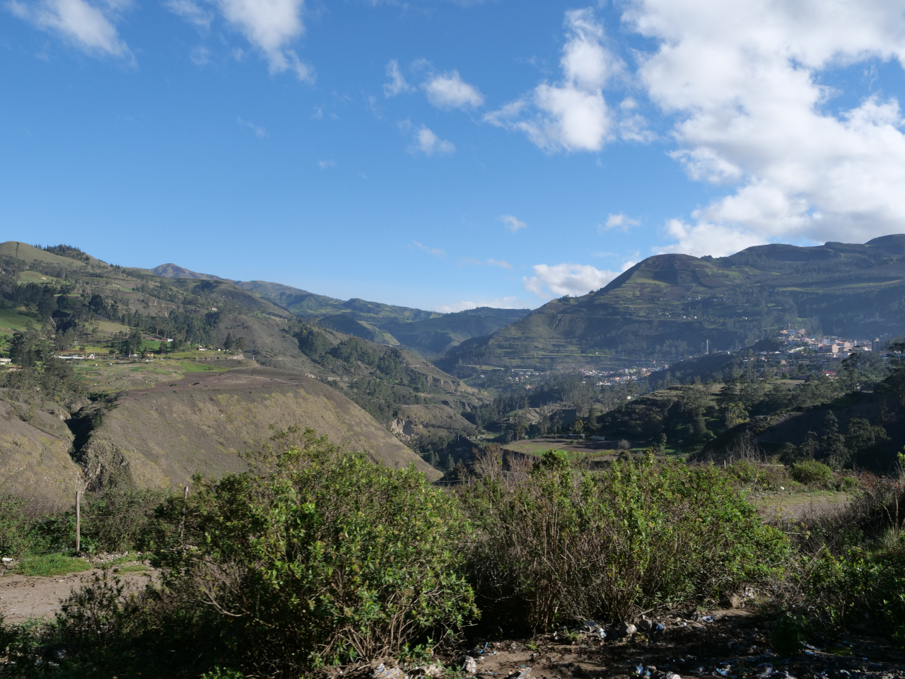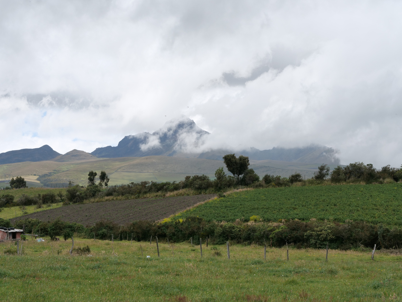 In Südamerikas Rom – Guaranda – verbringen wir unseren letzten Abend. Guaranda ist von 7 Hügeln umgeben, deshalb der Vergleich mit Rom. Vom Hotel, la Colina, aus haben wir eine wunderbare Sicht über Stadt und Hügel. Das Zentrum wartet mit einem einladenden Hauptplatz und zahlreichen hübschen Häusern mit Balkonen auf. Am letzten Tag klettern wir nochmals auf über 3000 Meter hoch, teilweise im dichten Nebel, durch tiefe Schluchten, Täler und einer sehr Kurven reichen Strasse. Diese scheinen bis zum letzten Meter für Ackerbau ausgenützt zu werden. Die verschiedenen grün-braunen Felder sind eine Augenweide.