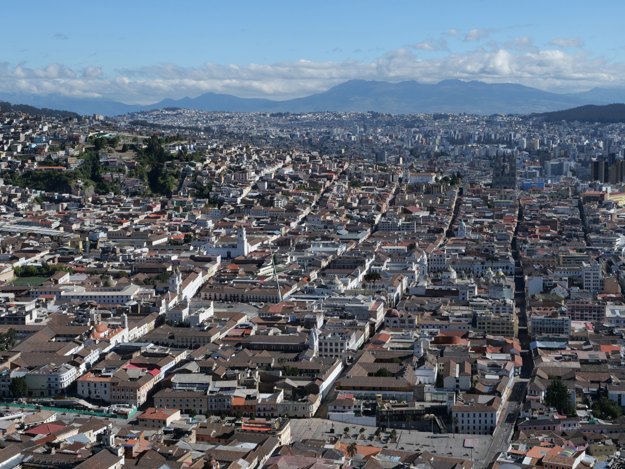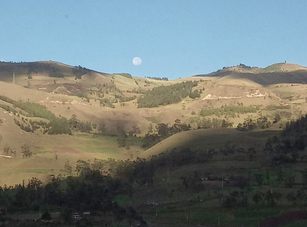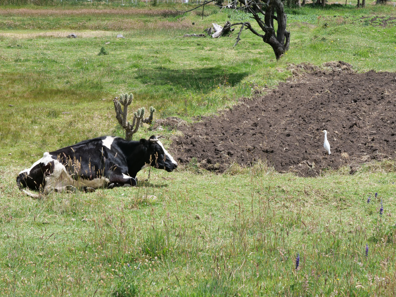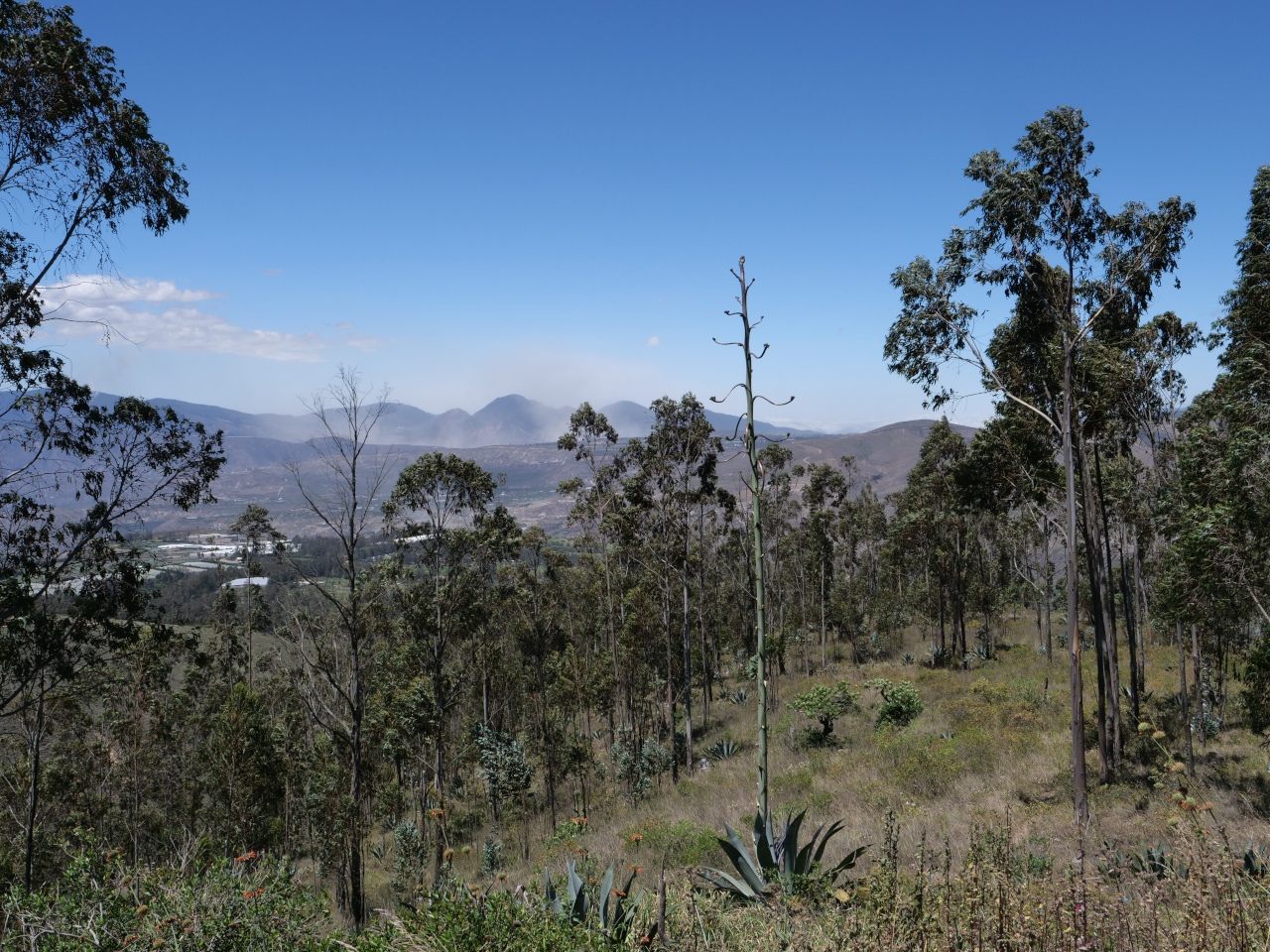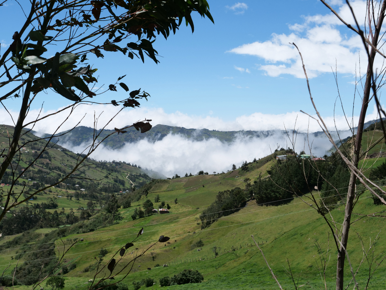 In Südamerikas Rom – Guaranda – verbringen wir unseren letzten Abend. Guaranda ist von 7 Hügeln umgeben, deshalb der Vergleich mit Rom. Vom Hotel, la Colina, aus haben wir eine wunderbare Sicht über Stadt und Hügel. Das Zentrum wartet mit einem einladenden Hauptplatz und zahlreichen hübschen Häusern mit Balkonen auf. Am letzten Tag klettern wir nochmals auf über 3000 Meter hoch, teilweise im dichten Nebel, durch tiefe Schluchten, Täler und einer sehr Kurven reichen Strasse. Diese scheinen bis zum letzten Meter für Ackerbau ausgenützt zu werden. Die verschiedenen grün-braunen Felder sind eine Augenweide.