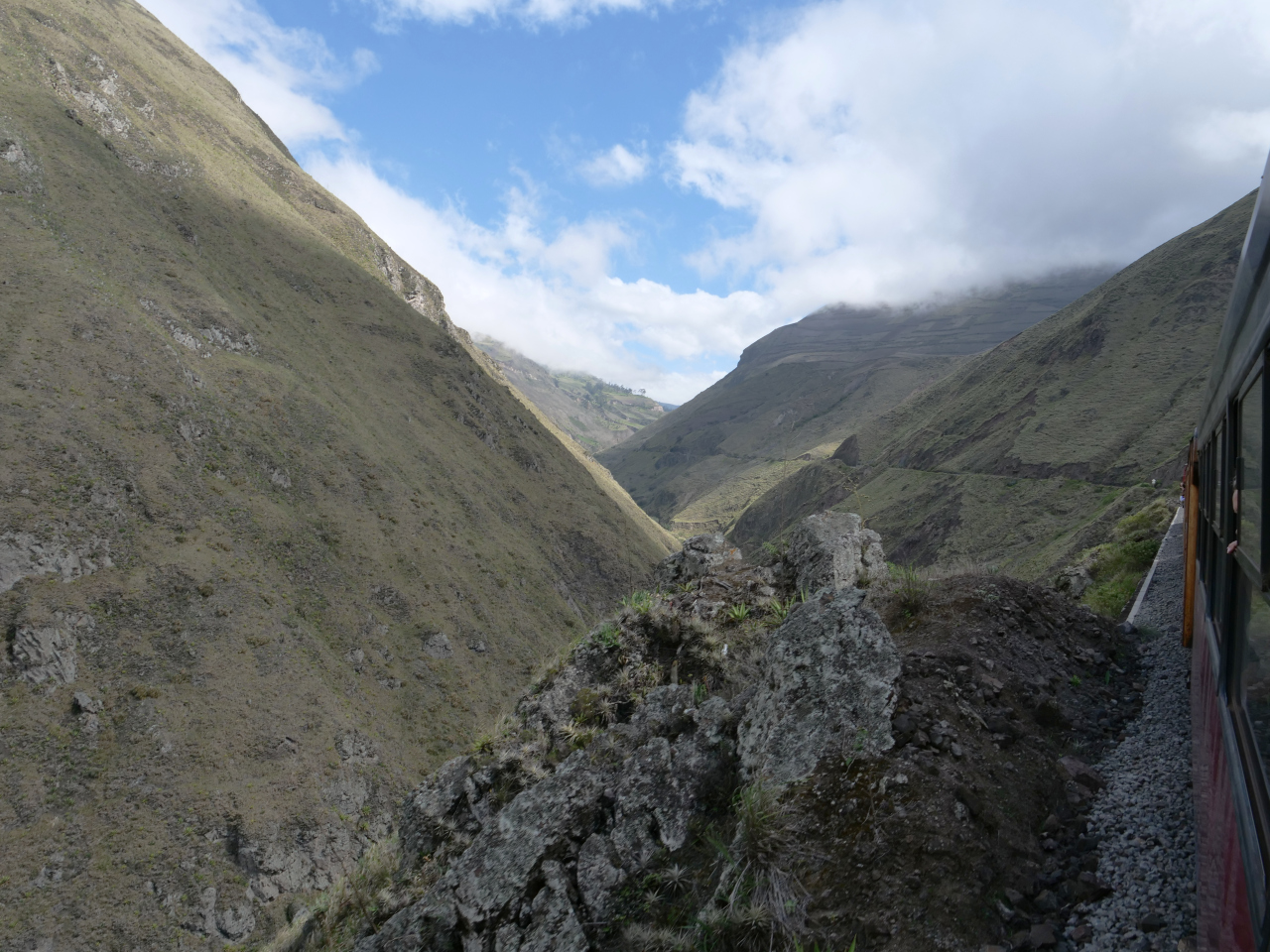 Einen interessanten Halt machen wir in Ingapirca, den best erhaltenen Inka- und vorgängig Canari-Bauten, fahren weiter bis nach Alausì. Eine Schmalspurbahn, 1067 mm breit, fährt uns früh morgens zur Nariz de Diablo durch wilde Schluchten und einsame Gegenden. Die Steigung wird mit einigen rückwärts und vorwärts Fahrten bewältigt. Die Dynamit Sprengungen kosteten leider beim Bau ungefähr 2500 Menschen das Leben.