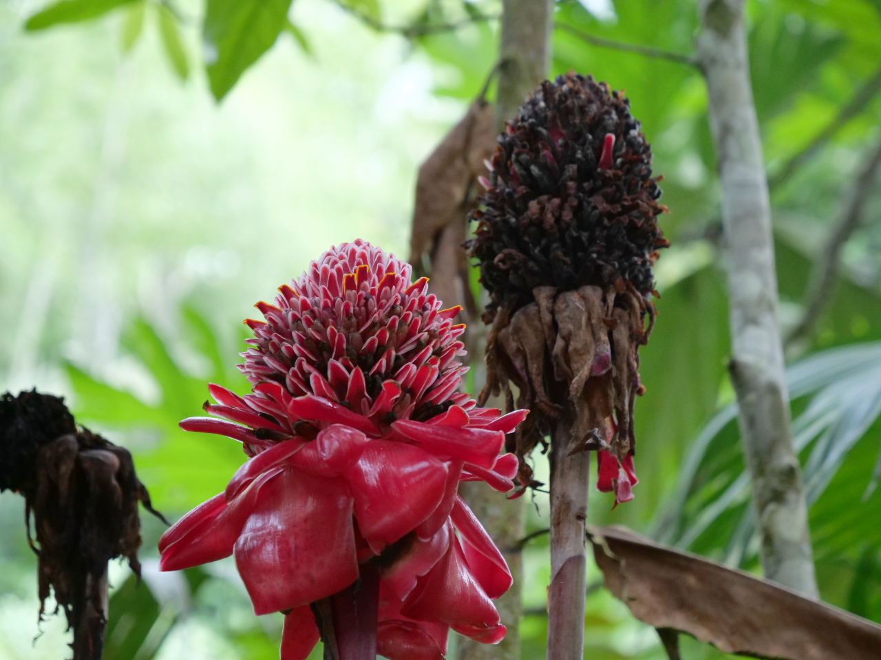 Zaruma, die Gold- und Silberminenstadt in der Nähe Perus Grenze, erreichen wir mit einer Fahrt durch fruchtbare Ebenen, Cacao- und Bananenplantagen. Dann schlängelt sich der Weg durch üppige Vegetation hinauf bis auf 1400 Meter. Hier gibt es den besten Hochlandkaffee Ecuadors. Zaruma liegt auf einem Andenausläufer. Der Nationalpark Podocarpus mit seinem Steinelbennebelwald ist einzigartig. An subtropischer Gegend vorbei erreichen wir den 2700 Meter hohen Pass der uns nach Vilcabamba führt. An steilen Hängen wird Ackerbau, das Meiste in Handarbeit, betrieben. Die Gegend erinnert nicht nur hier, sondern oft auf unserer Weiterreise, an die Schweiz, nur dass die Vegetation und die Höhen unterschiedlich sind. Vom Hotel haben wir einen wunderbaren Blick ins Tal und auf den heiligen Berg, den Cerro Mandango, den wir anderntags auf wildromantischen Wegen umrunden. Vilcabamba bleibt eine Art «Hippiestadt» und einige RentnerInnen, vor allem aus den USA, haben sich mittlerweile hier niedergelassen. In Saraguro «finden» wir Indigene vom Titicacasee (bolivischer Teil) die von den Inkas vertriebenen wurden.