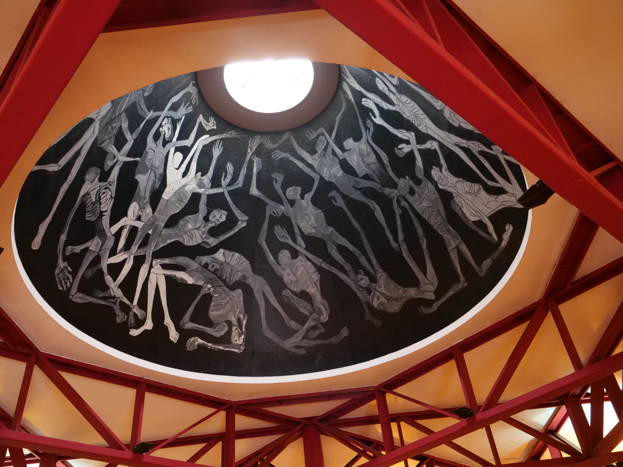 Die Hauptstadt Quito, einer der höchst gelegenen Hauptstädte der Welt, kommt näher. Mit Michael, einem Schweizer, von Salsareisen verbringen wir einen guten und leckeren Abend. Am nächsten Morgen zeigt uns Ricardo die «wichtigsten» Plätze, Kirchen, Bauten der Altstadt. Mit einem Buchreiseführer wären wir ebenso gut beraten, im Gegensatz zu den anderen 3 Führern. Nachmittags besuchen wir auf eigene Faust in der Neustadt die Fondation Guayasamin inklusive la Capilla del Hombre. Guayasamin (1919 – 2009) ist der berühmteste Künstler Ecuadors. Teilweise wird er mit Picasso verglichen. Kritische Wandmalereien hängen im In- und Ausland. Für uns ist es ein überaus lohnenswerter Besuch.