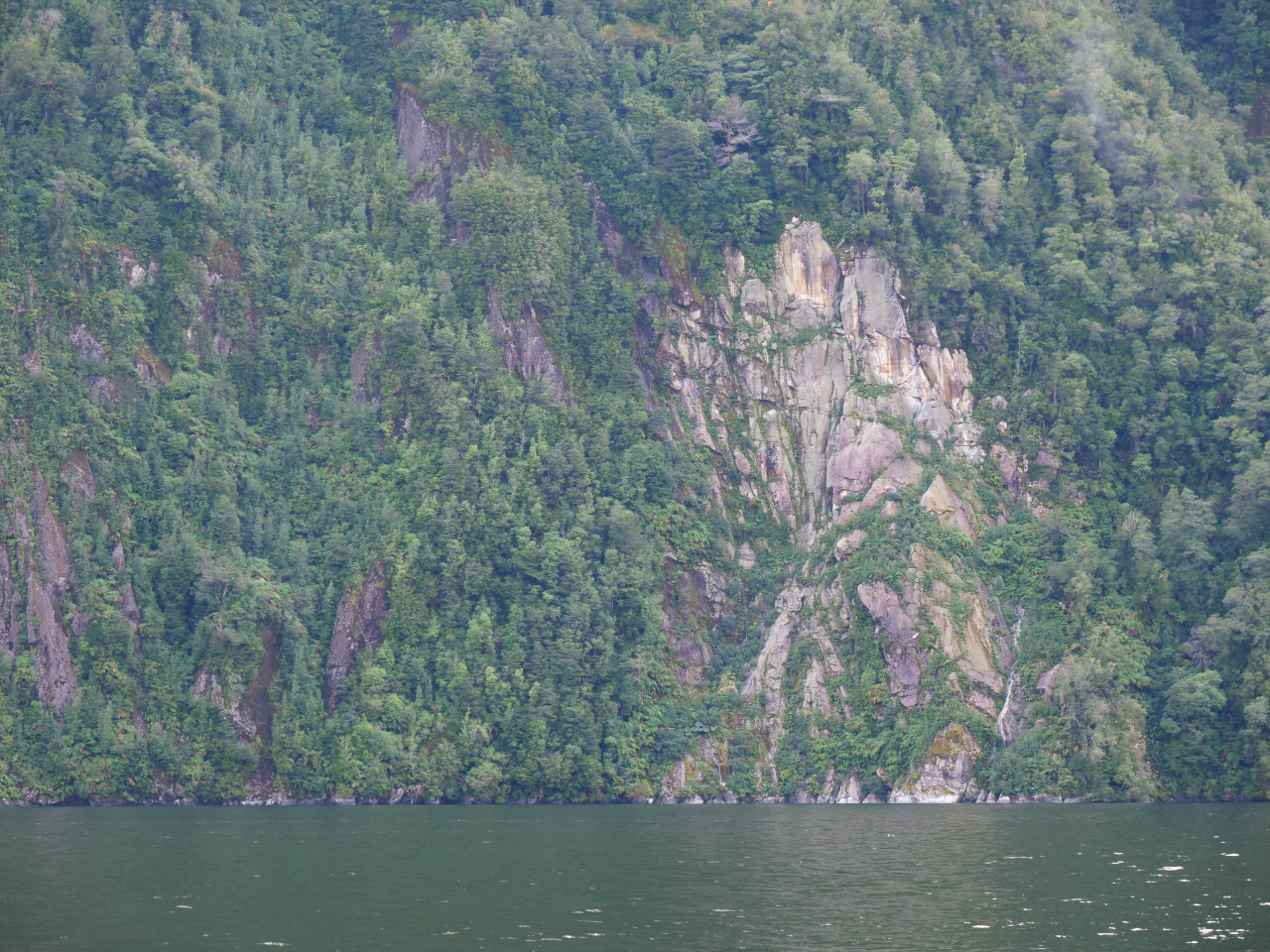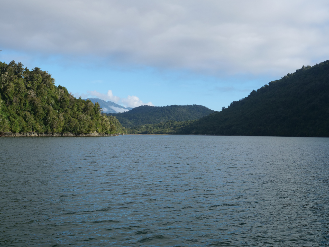 Ein wunderschöner etwa 3 nm langer enger Fjord, Estéro Quintupeu, fasziniert uns mit seinen zahlreichen von hoch oben herabstürzenden kleineren und grösseren Wasserfällen. Die mit Vorfreude heissen Quellen auf der Insel Llancahué geniessen wir bei milden Temperaturen und einem, für uns nicht üblich, üppigen Mittagessen im Badehotel, steigen den Fussweg hoch, teilweise durch dichtes Holz, zu drei Aussichtsplätzen mit einer grandiosen Sicht und besuchen, nicht auf Chiloé, die kleine offene Holzkapelle.