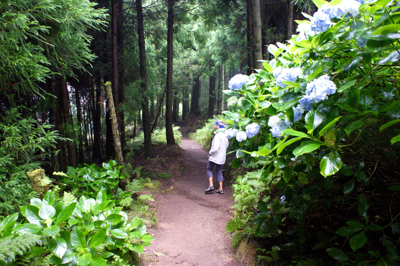 Wir entschliessen uns mit dem Bus zuerst eine Reise in Nordwesten zu machen, dann eine Wanderung zum Lagoa Azul und Lagoa Verde zu machen und von dort den Bus zurück nach Ponta Delgada zu fahren. So sehen wir schon einen rechten Teil der Insel und unsere Wanderung ist ebenfalls nicht „ohne“. Sie führt uns durch dicht bewachsene Wälder, üppige Mais- und Getreidefelder und wir denken für unsere Fitness Genüge getan zu haben. Die Seen im Landesinnere sind wundervolle Erholungsgebiete. Auch für Ornithologen und Botaniker gibt es viel zu sehen und bestaunen.