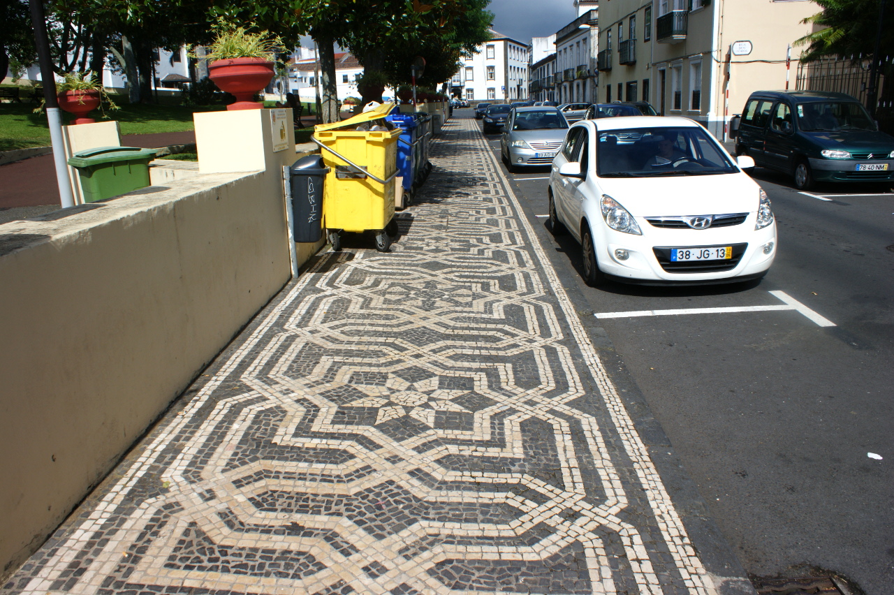 In Ponta Delgada, jedoch auch an anderen Orten, sind die Strassen oft mit Pflastersteinen ausgelegt, ebenso die Trottoirs. Diese sind mehrheitlich mit wunderschönen Mustern versehen. Dieses Steine legen scheint eine spezielle Handwerkskunst der Portugiesen zu sein. So wurde vor kurzem der Münsterhof in Zürich von portugiesischen Arbeitern in Stand gestellt.
