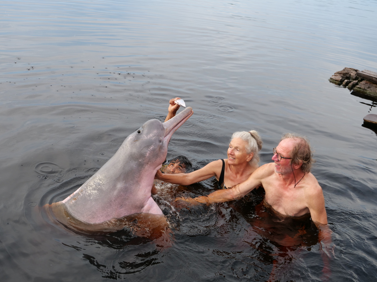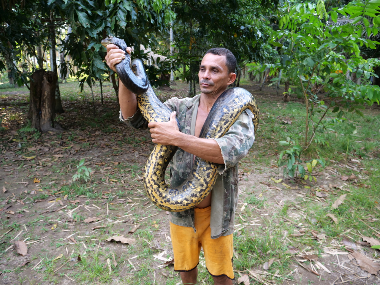 Fischen an lauschigen Plätzen gehört zum Programm, ebenso der Besuch eines Dorfes mit seiner traditionellen Handwerkskunst. In einem anderen „Dorf“ wird eine Anaconda vorgeführt und auf einem Flussboot betreibt eine Familie das Geschäft mit den rosa Flussdelfinen. ![]()