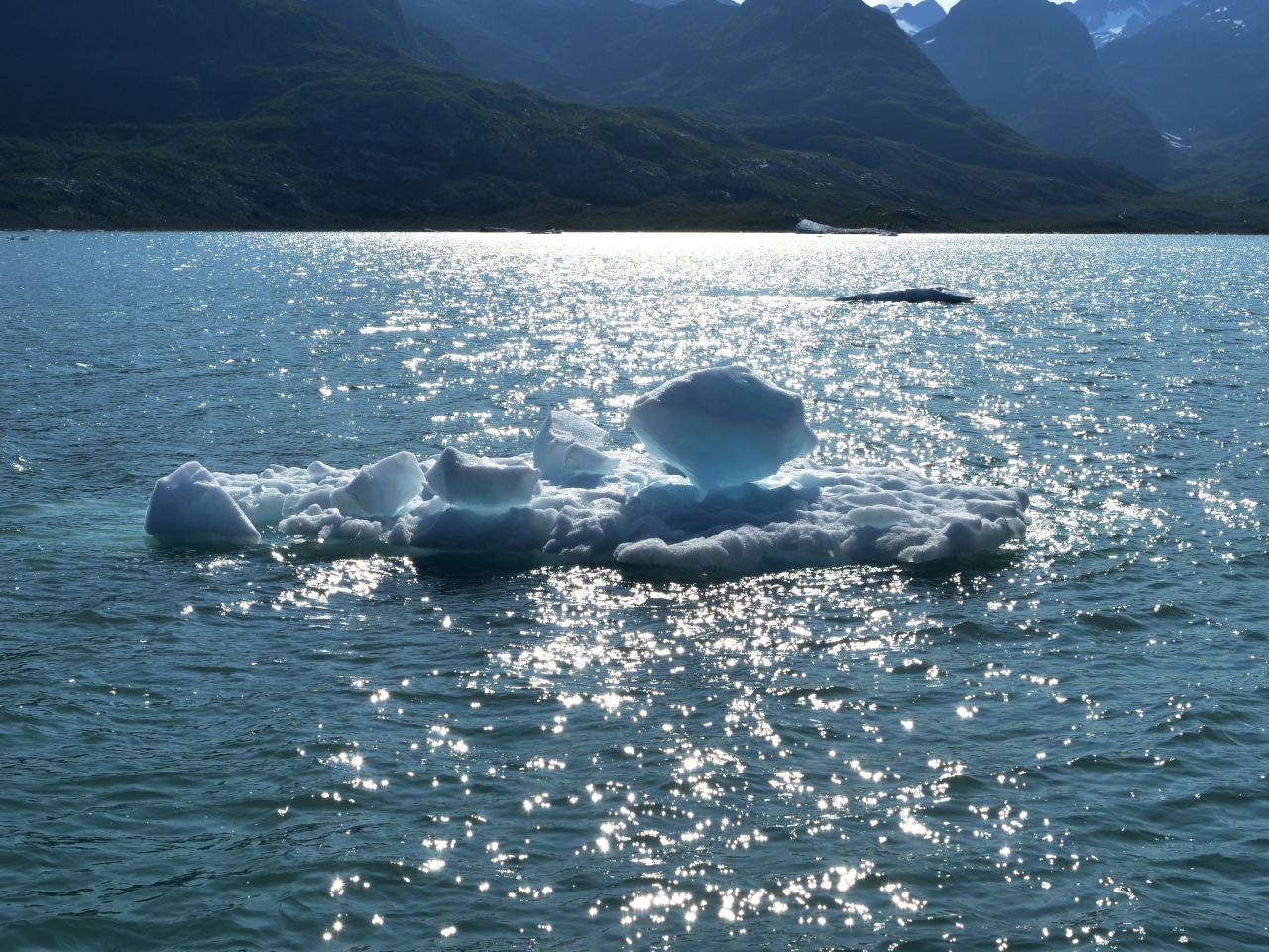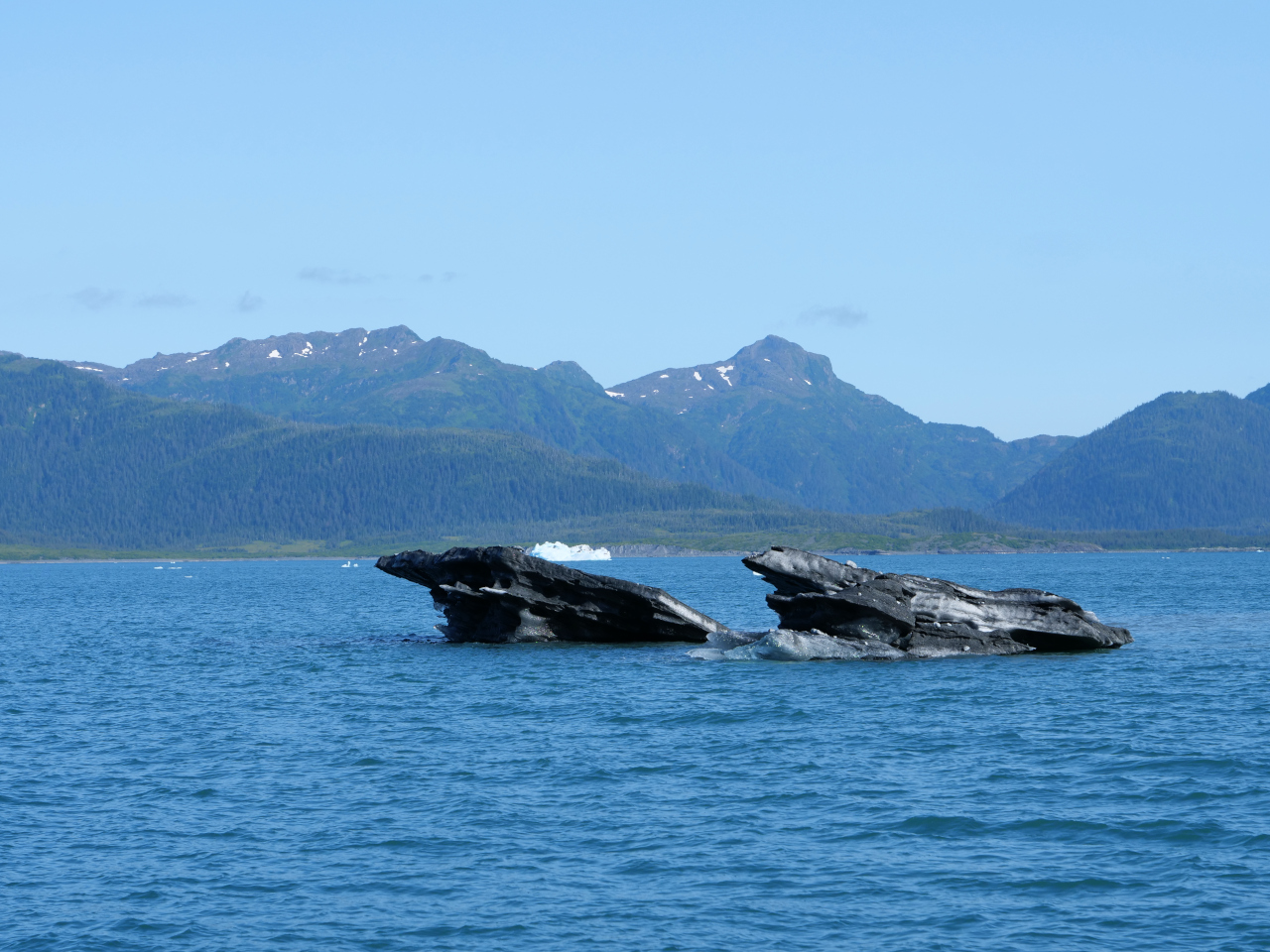 Am frühen Morgen entdecken wir am Ufer eine Schwarzbärin mit ihrem Jungen. Die Freude ist gross. Persönlich finde ich die Schwarzbären «eleganter» als die Braunbären. Kurze Zeit darauf tauchen abermals eine Mutter und ihr Junges auf. Hansueli meint es könnten die selben gewesen sein. Ich finde das zweite Jungtier kleiner als das erste. Später vertritt sich noch ein «Junggeselle» die Beine. Mit dem Fernglas sind sie sehr gut zu sehen. Die Icy Bay zieht uns an in der einige Gletscherzungen bis in Meer ragen, so der Tiger Tail, der grosse Chenega Gletscher, wo wir hin wollen um dann im Tiger Bite die Nacht zu verbringen. Die Eisschollen den Fjord hinunter werden dichter und dichter, manchmal mit Seehunden «garniert». Es ist kein wirklich kompaktes Eis, das nicht durchbrochen hätte werden können. Trotzdem entscheiden wir uns um zu kehren. Es wird auch merklich kühler ob all des Eises. Da ist uns ein wärmerer Ankerplatz lieber. Die Mallard Bay, ein mit hohen Felsen und viel grün umgebener tiefer und ruhiger Einschnitt erscheint uns gerade richtig. Bei sommerlichen Alaskatemperaturen sitzen wir im Cockpit bis die Sonne hinter dem Berg verschwindet.