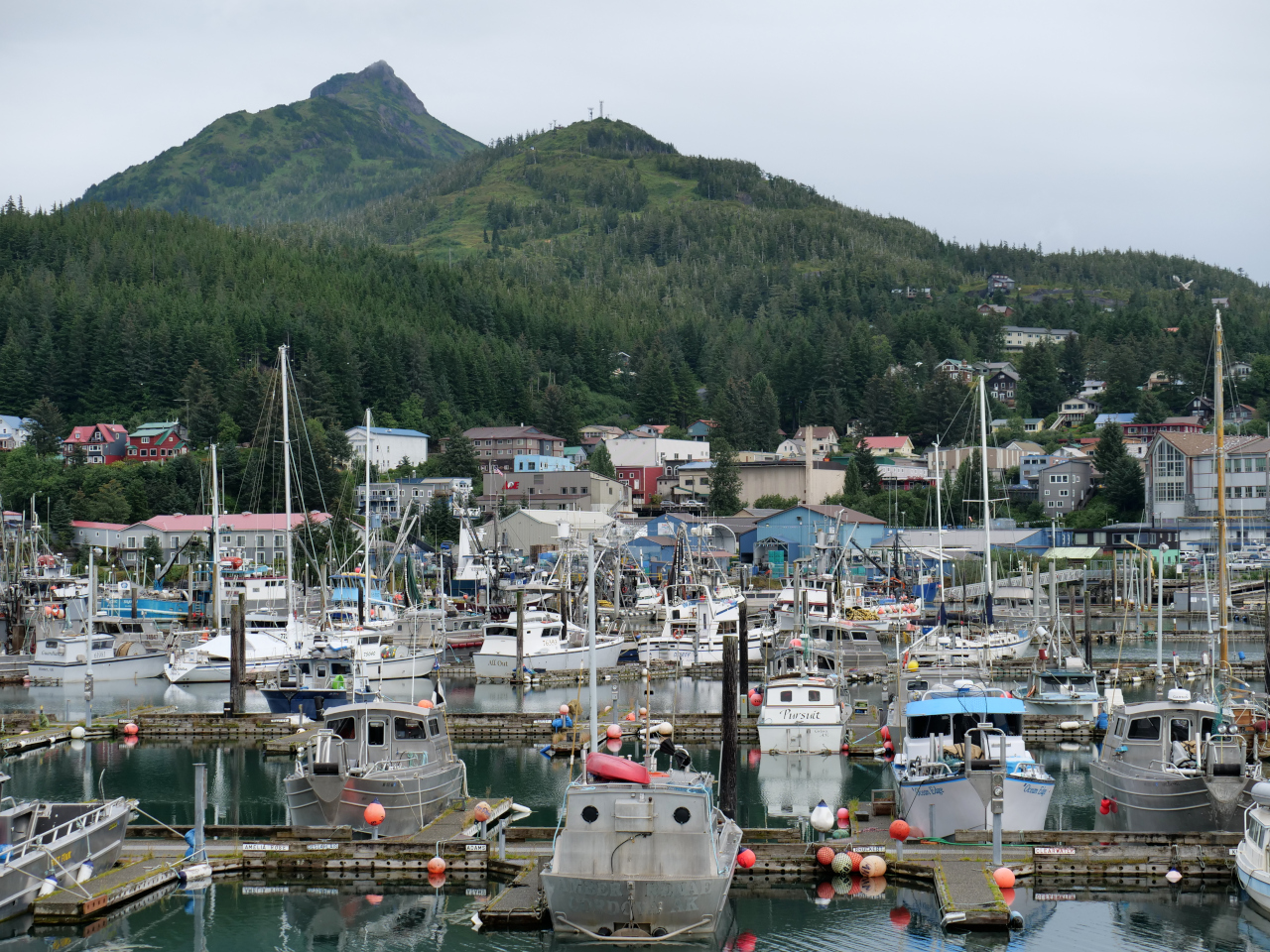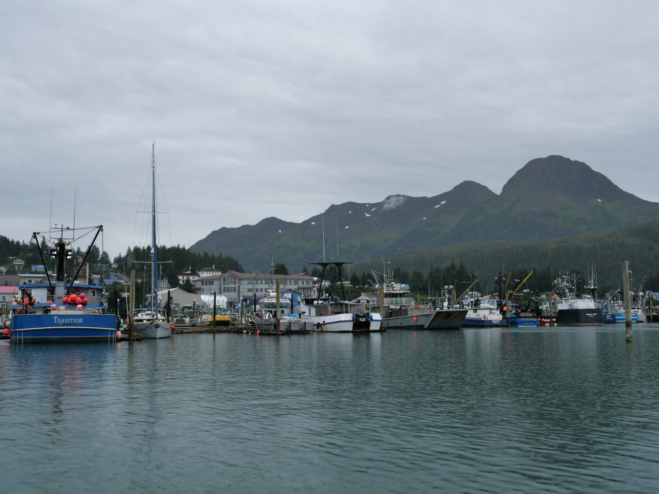 Nach einer Woche Prince William Sound legen wir im Fischerhafen Codova an. Der Ort ist nur per Schiff oder Flugzeug erreichbar. Die Fischfabriken sind zahlreich. Sie sind die heutige «Wirtschaft». Zu Gold- und Kupferminenzeiten kurz nach 1900 wurde eine Eisenbahnlinie von Kennicott bis Cordova gebaut (nicht mehr in Betrieb) Wir liegen neben dem Fischerboot «Tradition» Klein kommen wir uns neben ihr vor. Die Mannschaft ist gerade dabei ihr Schiff vom Lachsfang für den Heilbuttfang und andere mehrheitlich sich am Meeresboden befindliche Fische umzurüsten. Die Kapitäne haben oft skandinavische und/oder deutsche Vorfahren.