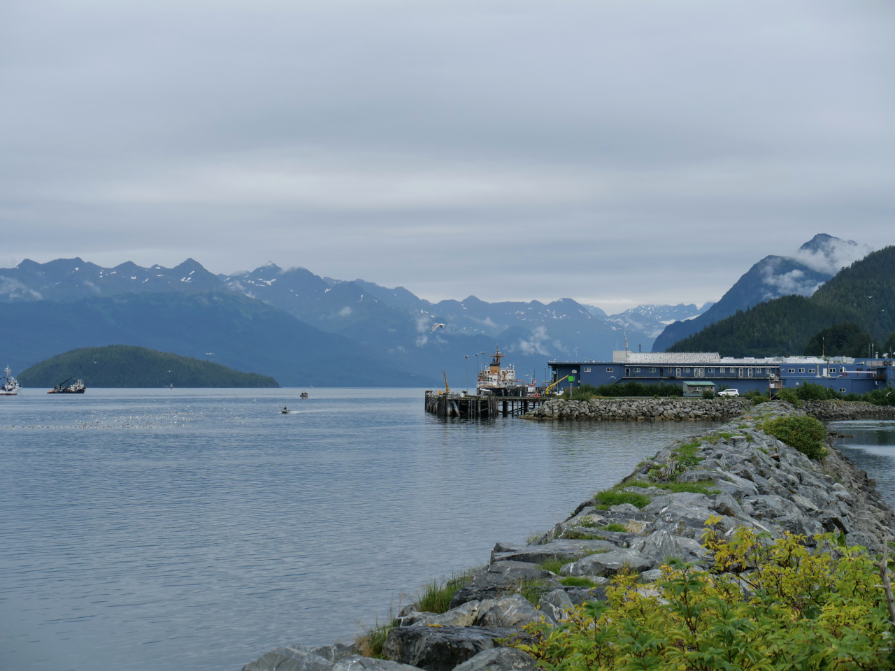 Glacier Island hätte unser nächster Ankerplatz sein sollen. Es geht jedoch weiter bis zur sicheren Emerald Cove, wo wir mit zwei aneinander gebundenen Fischerboote ankern. Bei «nach em Räge schiint Zsunne» Wetter überqueren wir die nicht allzu befahrene Valdezschifffahrtsstrasse. In der Nähe fuhr der Tanker Exxon Valdez am 24. März 1989 auf Grund und löste eine der grössten Ölkatastrophen aus.