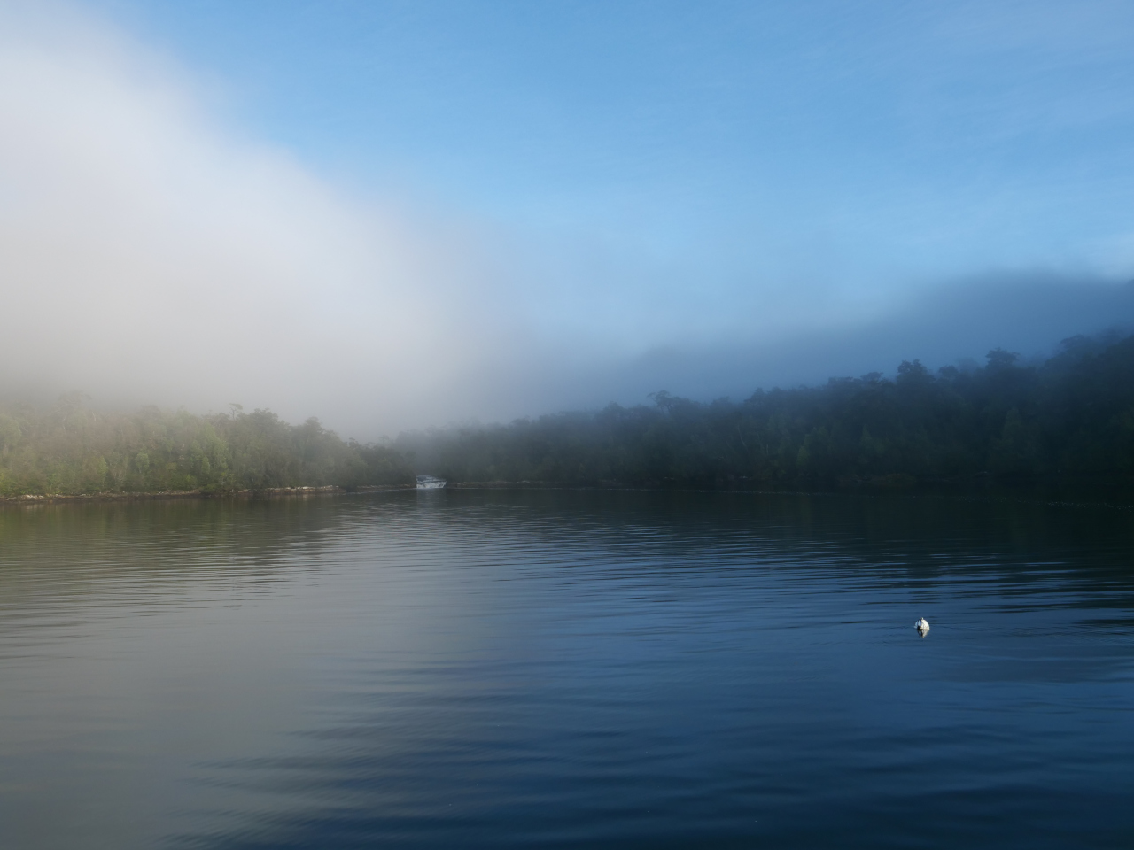Bei blauem Himmel und angenehmen Temperaturen verbringen wir einen Ruhetag in Puerto Millabu am Strand und klettern dem Wasserfall entlang hoch um über die eindrückliche Bucht zu schauen. Ein Entscheid liegt an: wollen wir den „Umweg“ über den Arm von Estéro Elefantes, Golfo Elefantes in die Laguna San Rafael wagen. Ventisquero San Rafael ist der weltweit einzige grosse Tidengewässer Gletscher der südlichen Halbkugel der sich so weit nördlich (46°S) befindet. Auf der Nordhalbkugel würde das ungefähr entsprechen wie wenn man am Lago Maggiore kalbende Gletscher bewundern könnte. Die Einzigartigkeit des Gletschers und die günstigen Wetterbedingungen erleichtern uns den Entscheid. Es gilt einige enge Stellen bezüglich der Tide gut zu berechnen, d.h. für uns wir nehmen den Anker bei Dunkelheit hoch und fahren die ersten Meilen mit Radar und unserem Track vom Vortag in die Finsternis. Bald beginnt die Dämmerung und wir gelangen als einziges Schiff (es hat oft Ausflugsboote) in die Laguna. Die Sonne zeigt sich, Delfine begleiten uns und wir geniessen die Schönheit dieses Ortes in vollen Zügen.