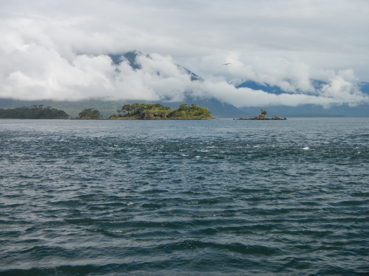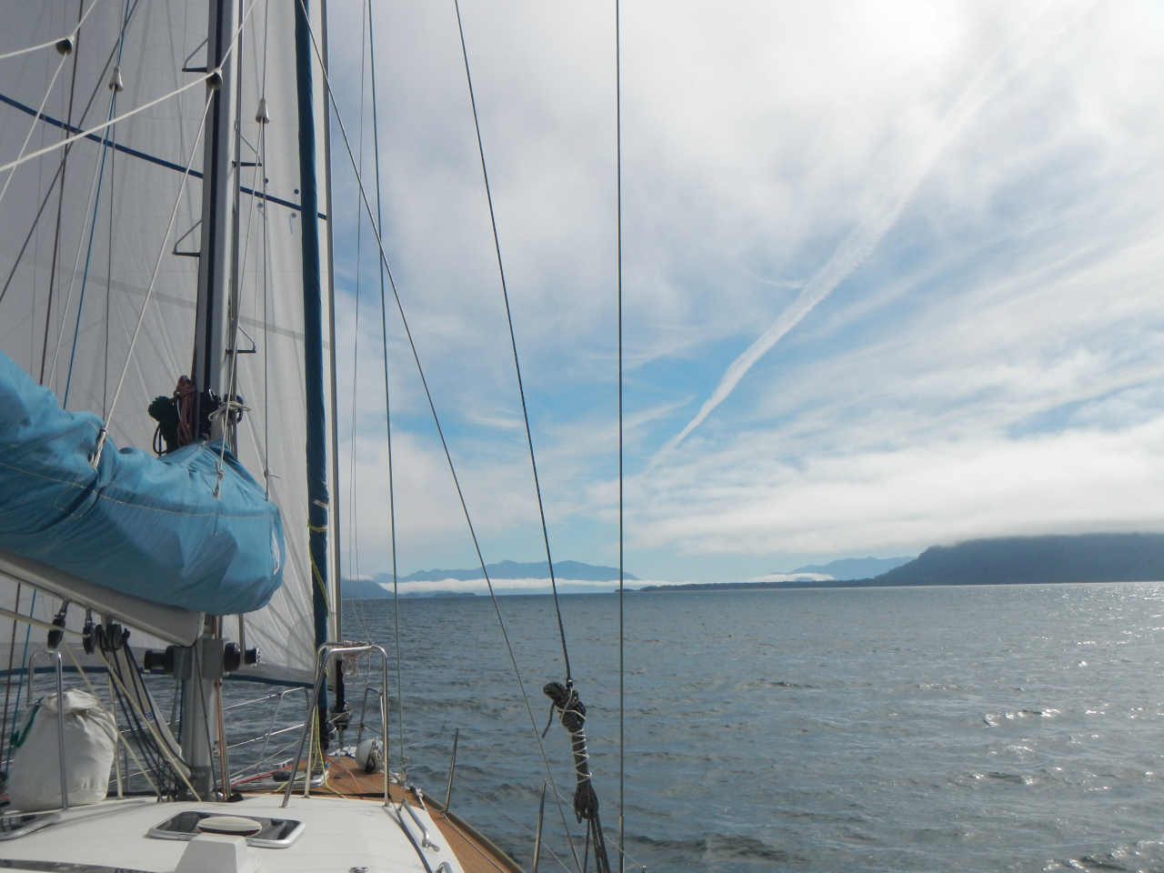 Der Golfo de Peñas, ein offenes etwa 120 nm langes Stück im Pazifik, berüchtigt und gefürchtet wegen seiner Wellen, dem oftmals starken westlichen Winden, welche die Schiffe auf Legerwall treiben, rückt näher. Neben dem täglichen Abrufen der Wetterverhältnisse über das Satellitentelefon informieren wir uns beim Leuchtturmwärter vom Faro San Pedro. Mit raumem Wind und nicht zu hohen Wellen segeln wir die gesamte Strecke, tauchen bei der „Anna Pink“ wieder in die Inselwelt ein.