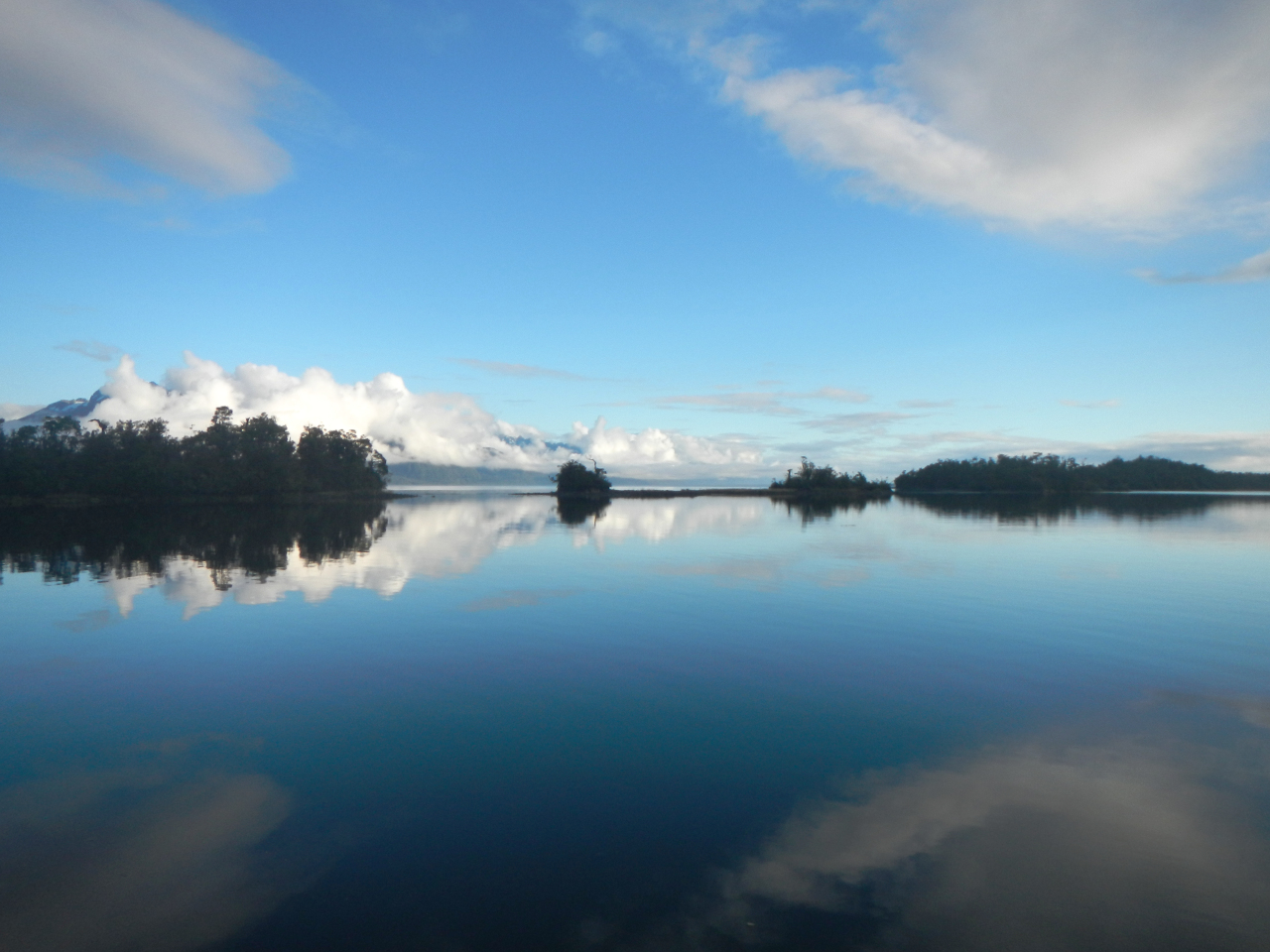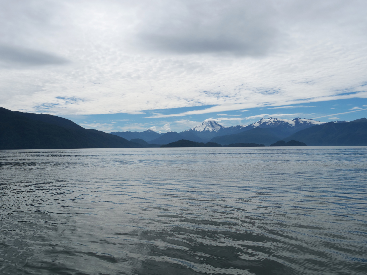 Nach dem Golfo de Peñas verändert sich die Landschaft, die schroffen Felsen, engen „Caletas“ manchmal kahl, manchmal üppig grün bewachsen, machen sanfteren Landschaften Platz. Meistens können wir frei ankern und jetzt wo wir an das Landleinen legen gewöhnt sind, brauchen wir sie kaum mehr.
