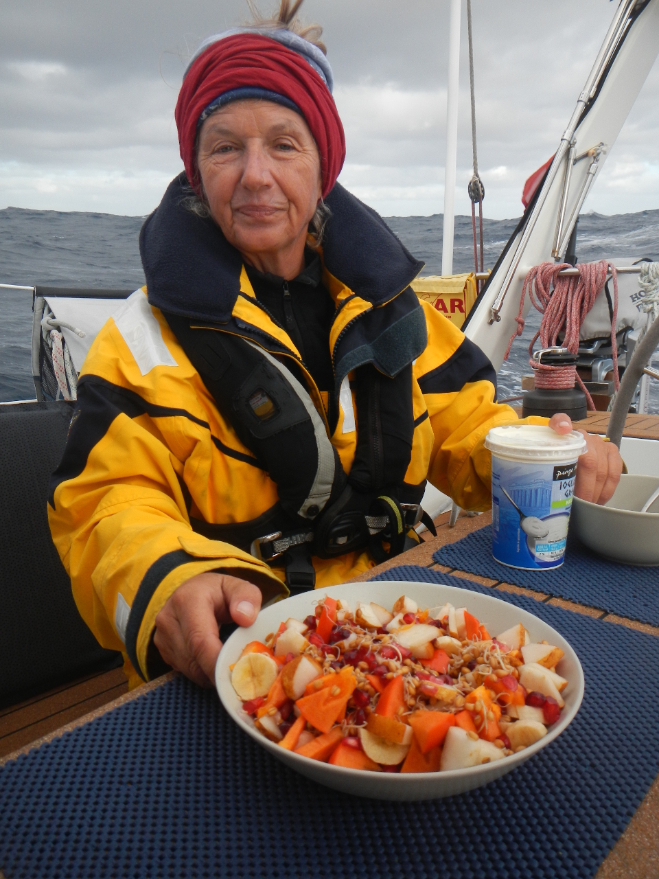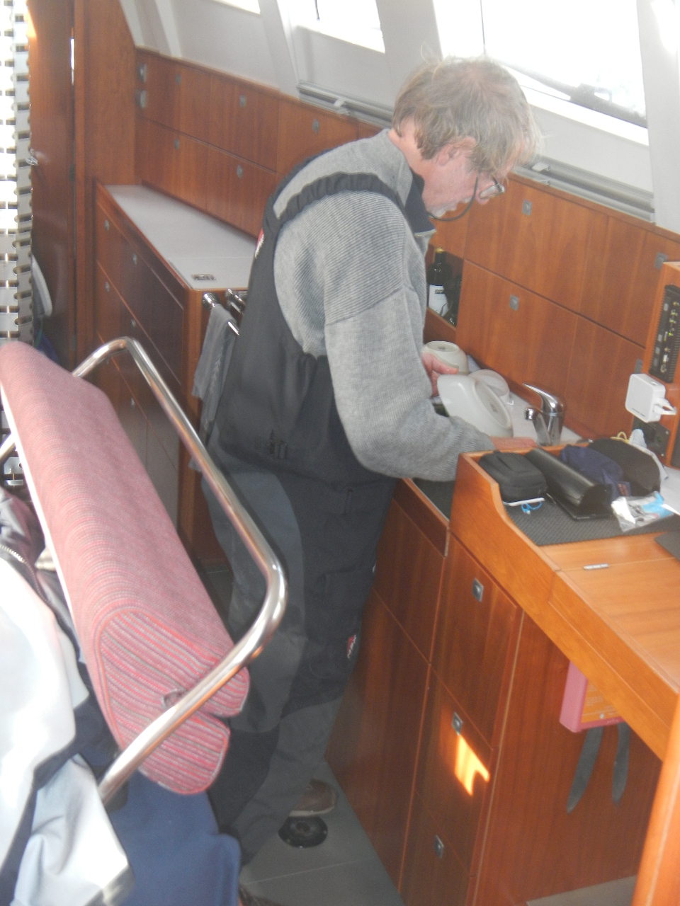 Die alltäglichen Dinge, wie Zähneputzen, „Katzenwäsche“, kochen, etwas „Ordnung“ ins Schiff bringen, benötigen ein Vielfaches länger als an Land, dazu kommen noch bewusste Ruhephasen tagsüber, damit wir nachts wieder fit sind.